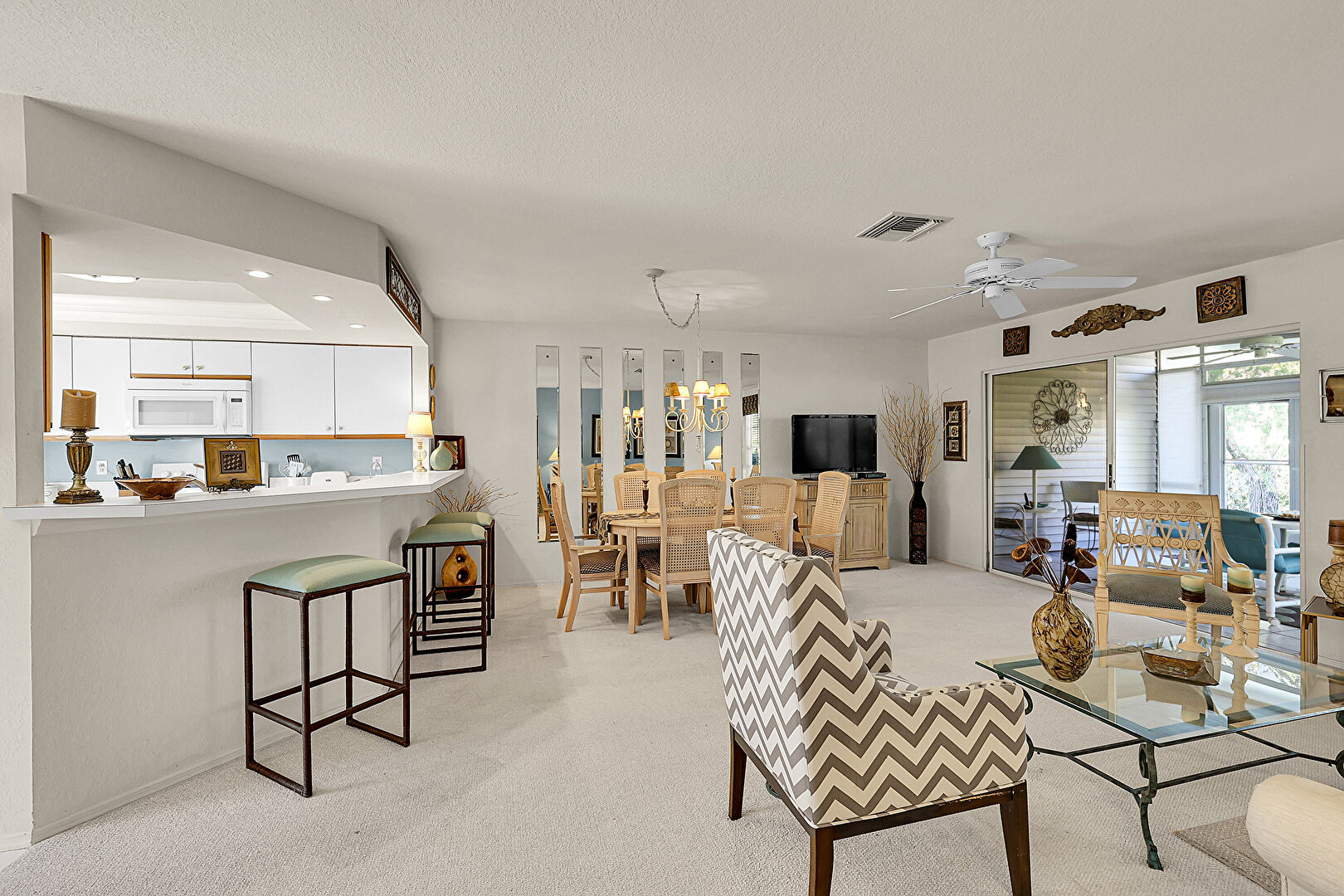 Baseboards Wall, Carpet, Ceiling Fan, Crown Molding, Drywall, Kitchen Bar, Kitchen Peninsula, Medium Brown Cabinets, Natural Light, Notable Chandelier, Opens To Living Area, Pass Through Window, Recessed Lighting, Textured Ceiling, Tile Floor, Tray Ceiling, Vent, Crown Molding, Kitchen Peninsula, Natural Light, Tray Ceiling