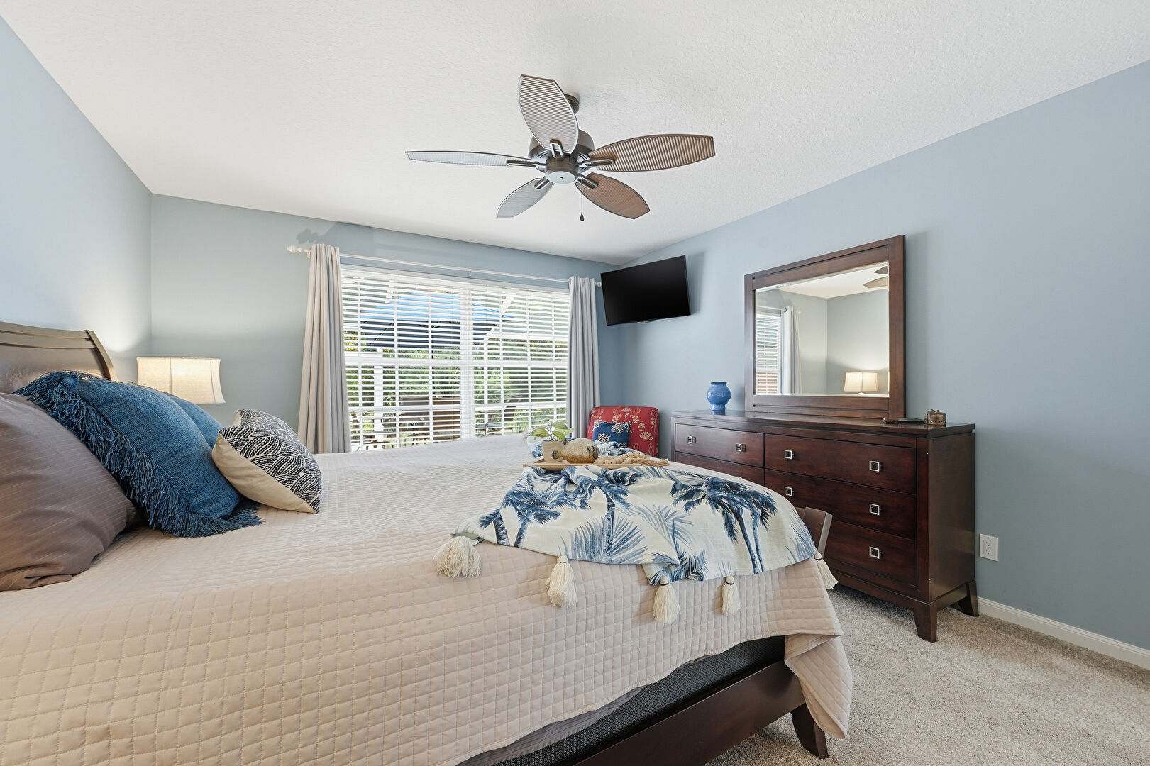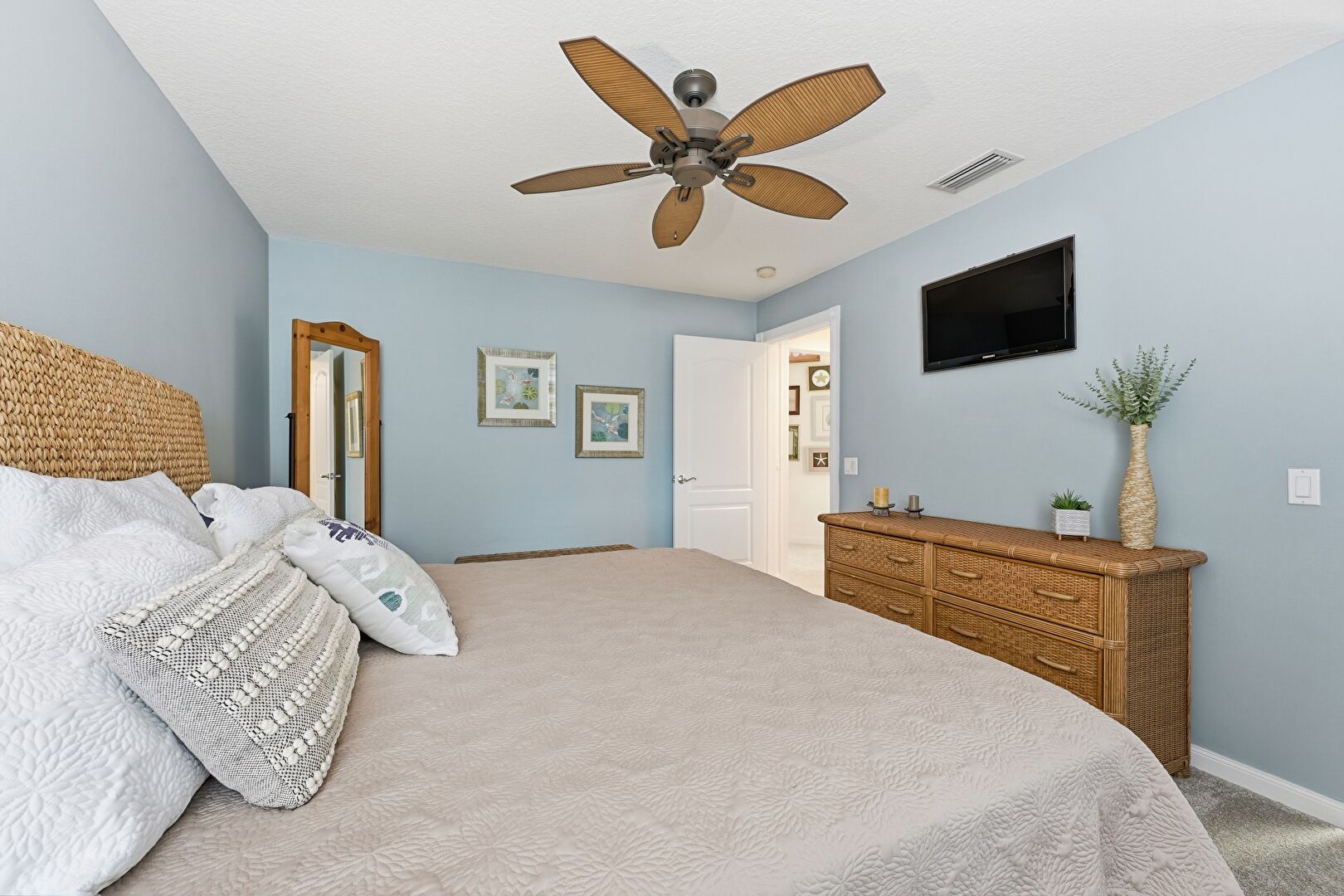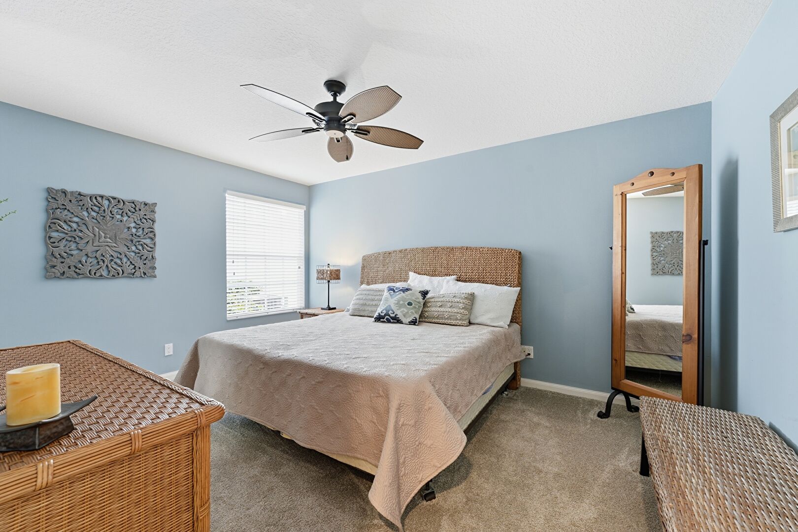 Baseboards Wall, Carpet, Ceiling Fan, Drywall, Natural Light, Vent, Carpet, Ceiling Fan