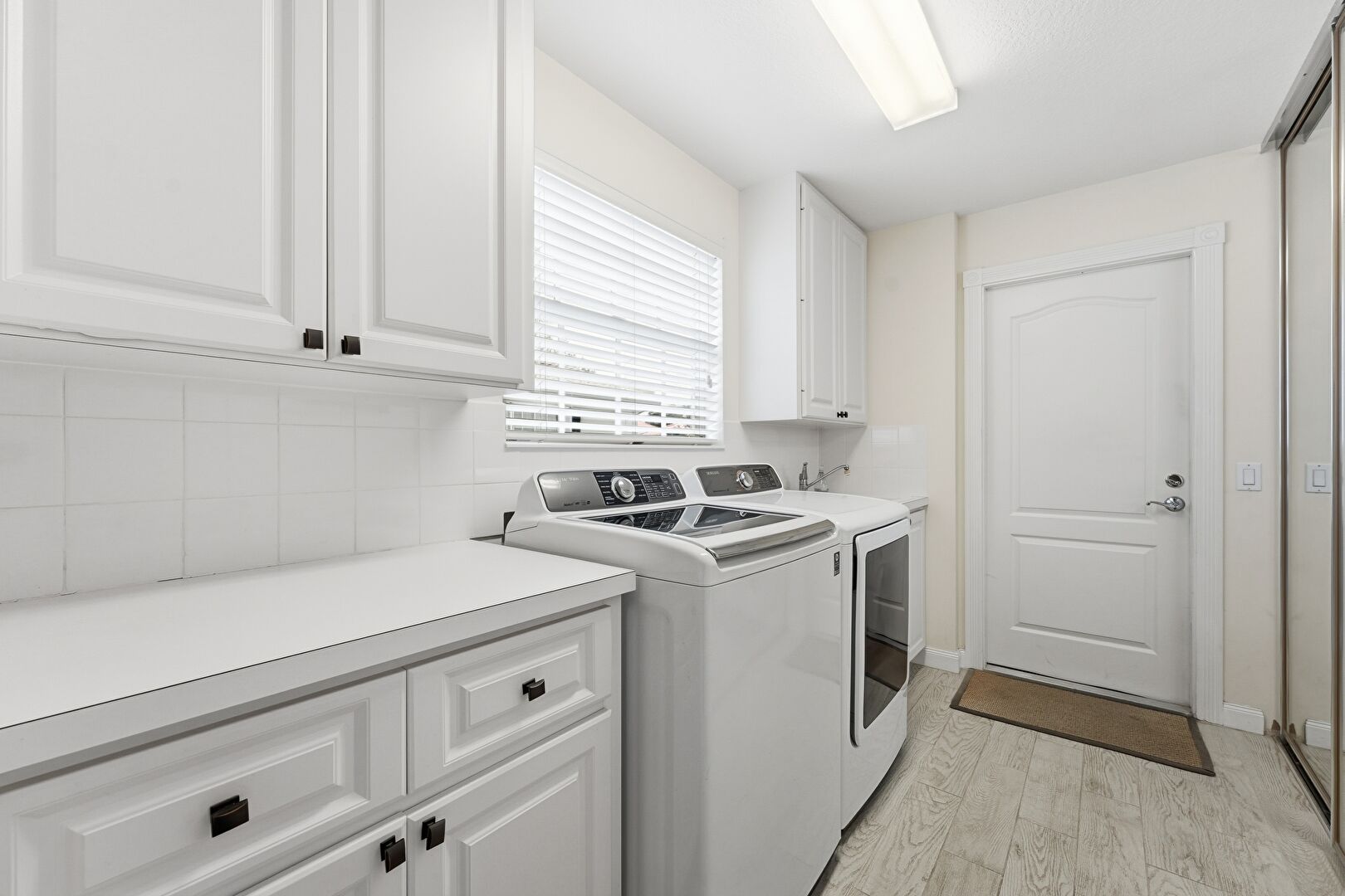 Baseboards Wall, Laundry, Natural Light, Wood Finish Floor, Drywall