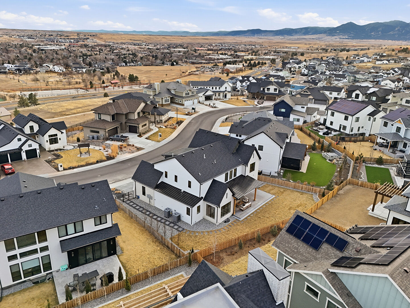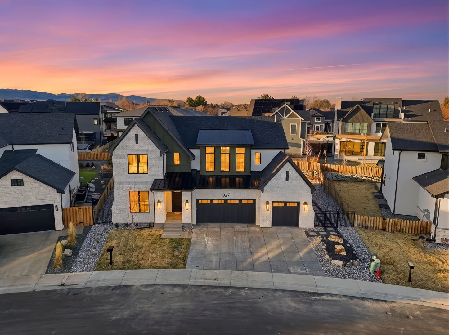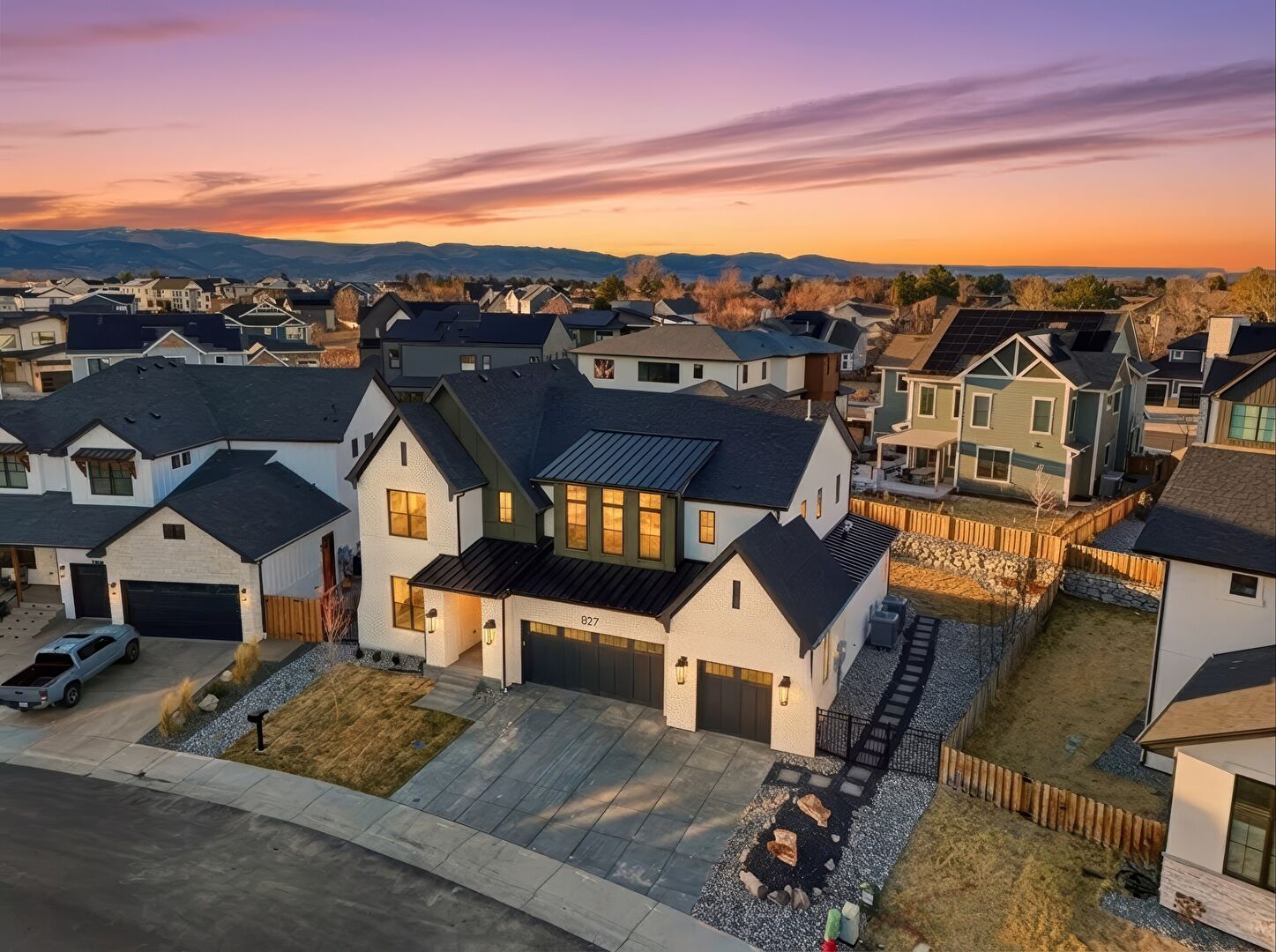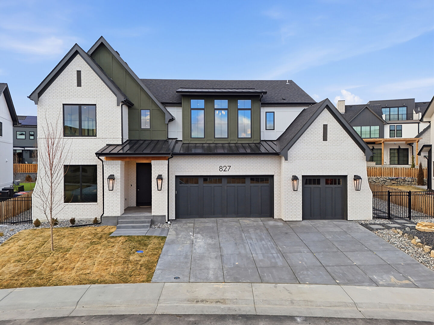 Board Batten Siding, Brick Siding, Built In Garage, Central Ac, Concrete Foundation, Downspout, Driveway, Fence, Gate, Gutters, Lawn, Metal Roof, Mountain View, Porch, Residential View, Shingle Roof, Solar Panels, Standing Seam Roof, Stoop, Vertical Siding, Central Ac, Concrete Foundation, Driveway, Fence, Lawn, Metal Roof, Stoop, Vertical Siding