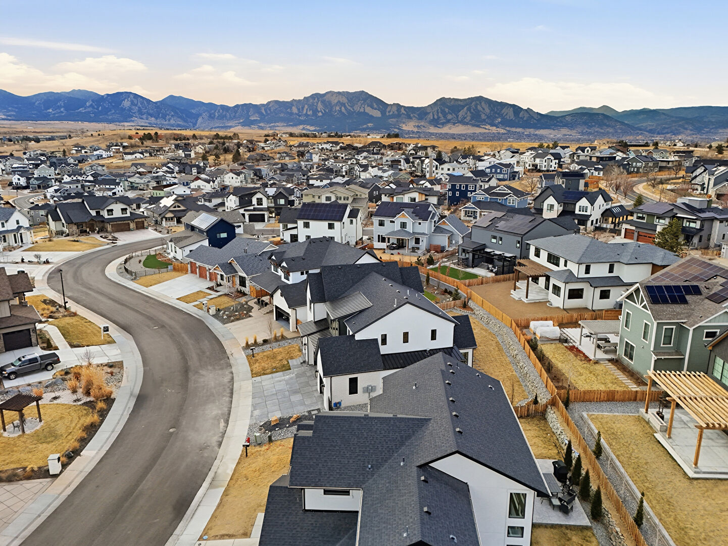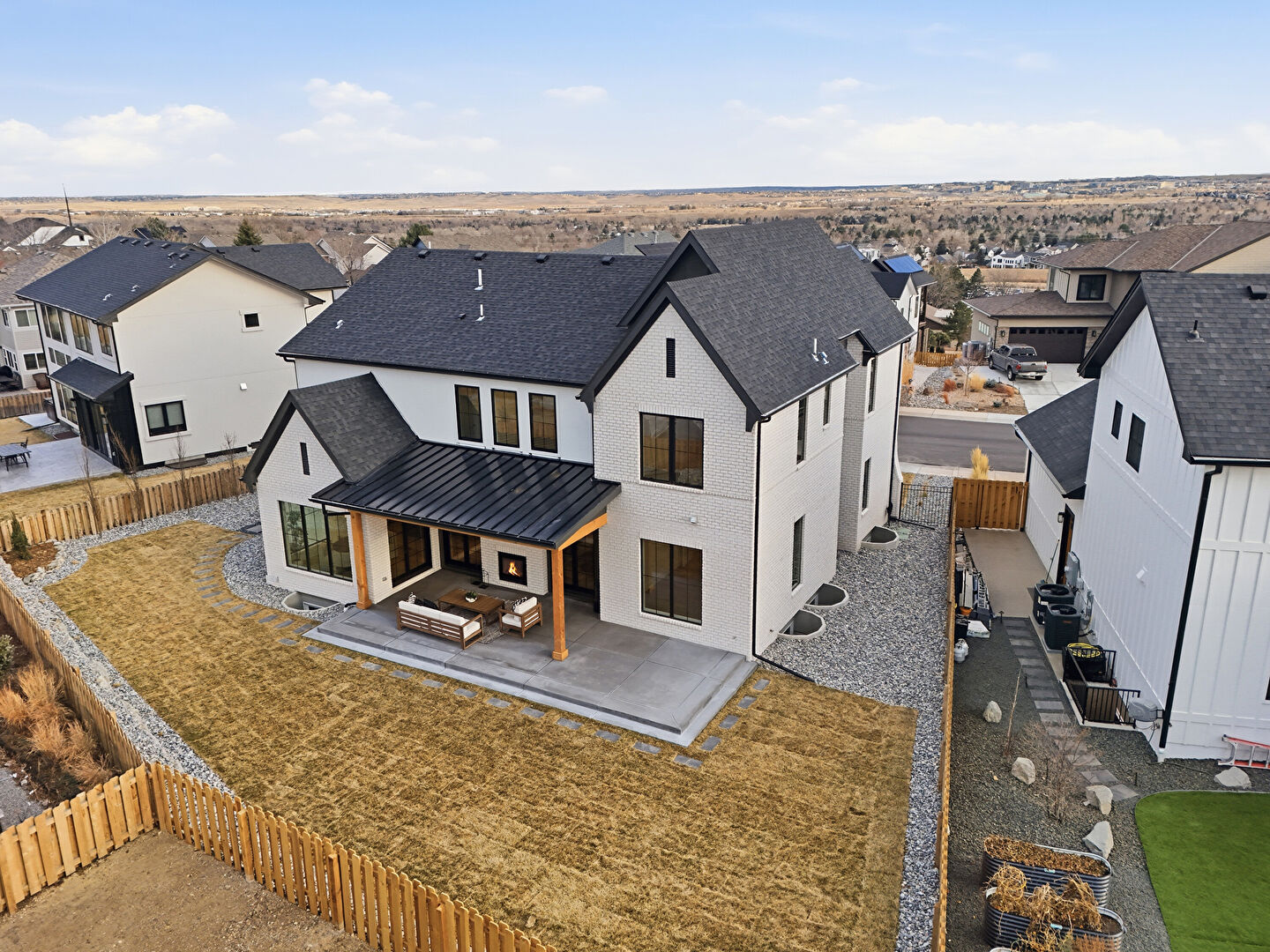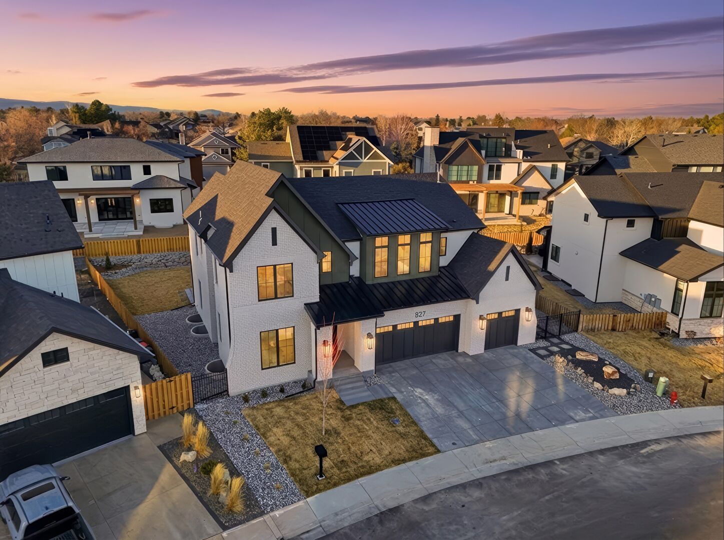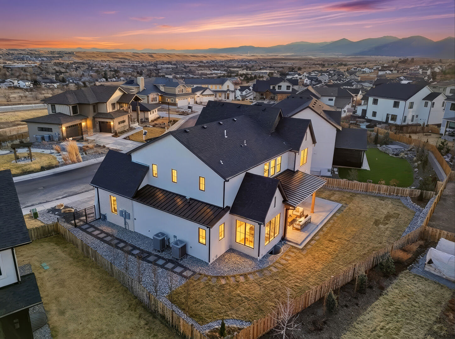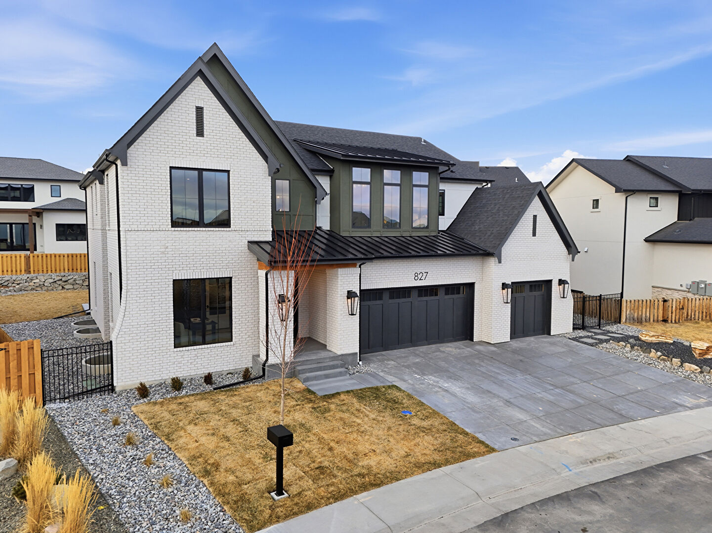Board Batten Siding, Brick Siding, Built In Garage, Central Ac, Concrete Foundation, Downspout, Driveway, Fence, Gate, Gutters, Lawn, Metal Roof, Mountain View, Porch, Residential View, Shingle Roof, Solar Panels, Standing Seam Roof, Stoop, Vertical Siding, Central Ac, Concrete Foundation, Driveway, Fence, Lawn, Metal Roof, Stoop, Vertical Siding
