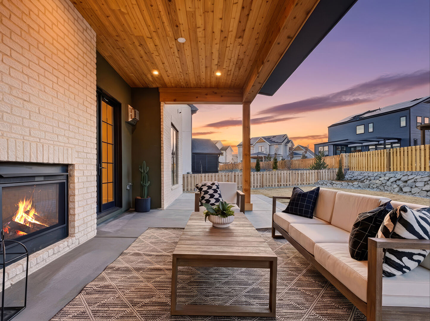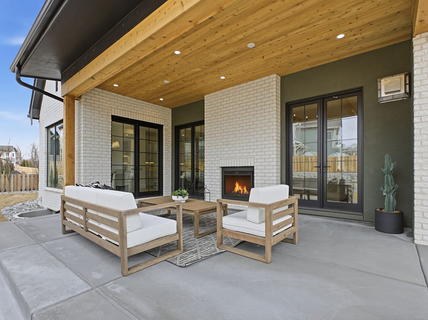 Fence, Fireplace, French Doors, Outdoor Living Space, Patio, Residential View, Wall Mounted Ac, Fireplace, Outdoor Living Space, Patio, Residential View
