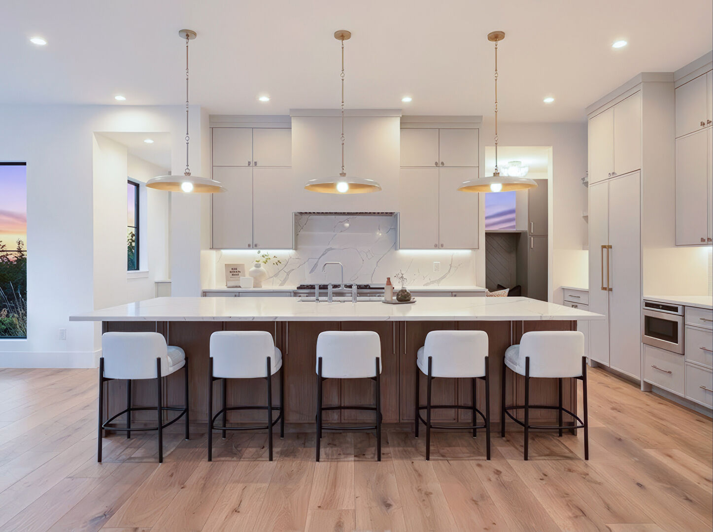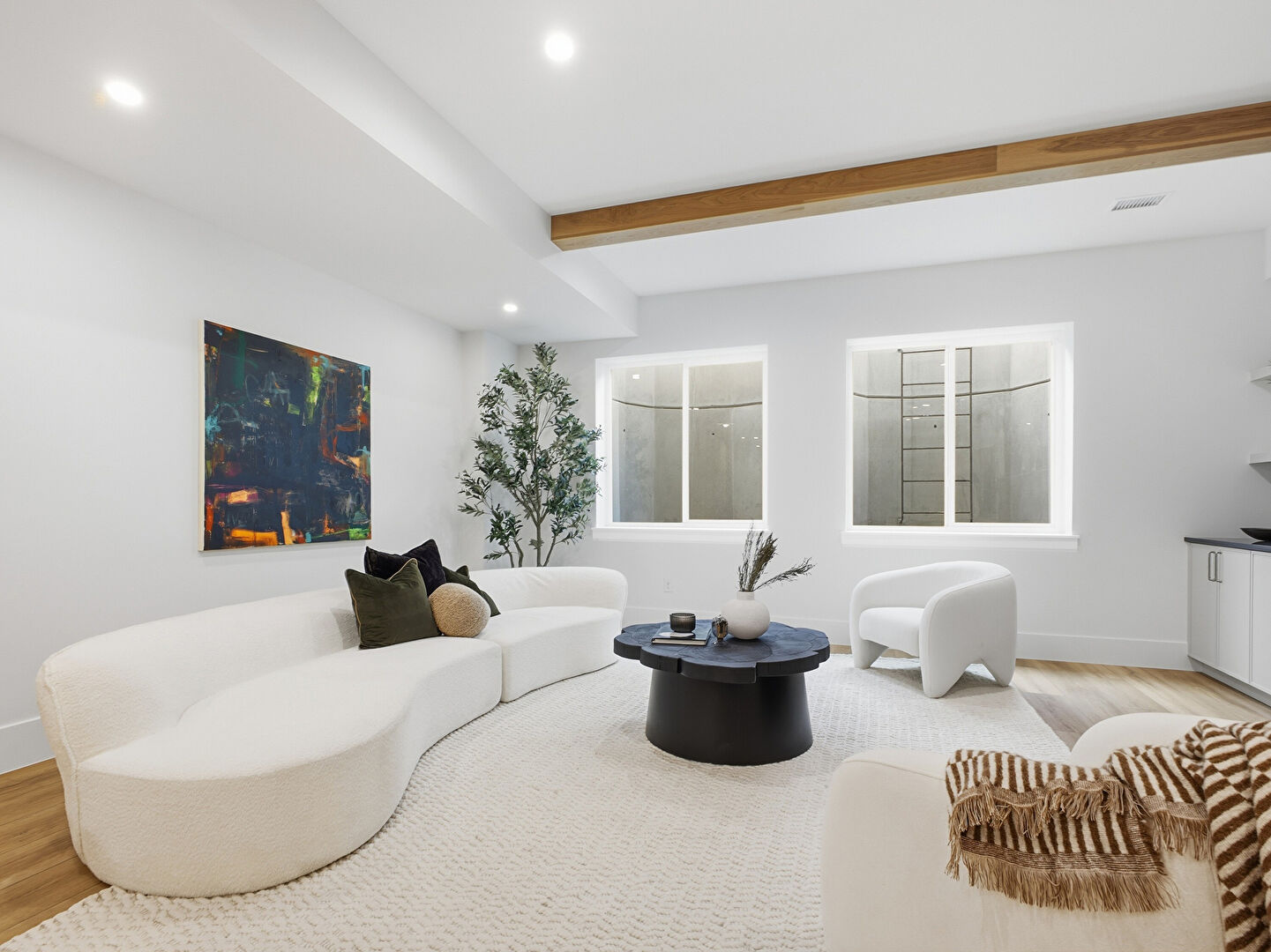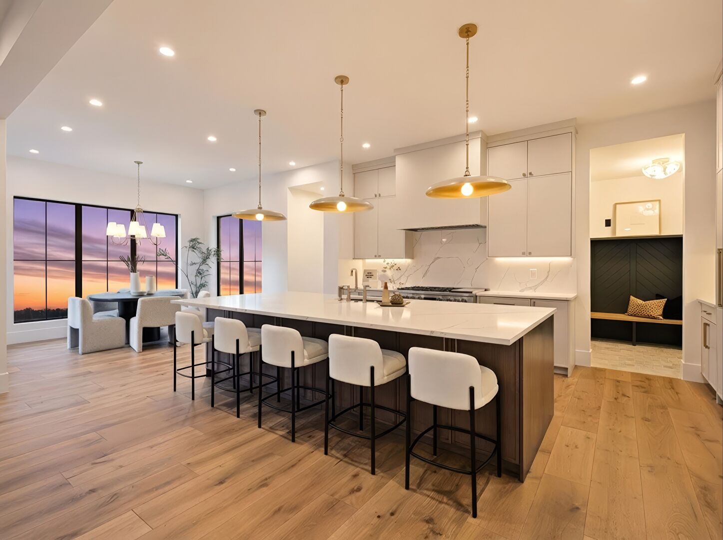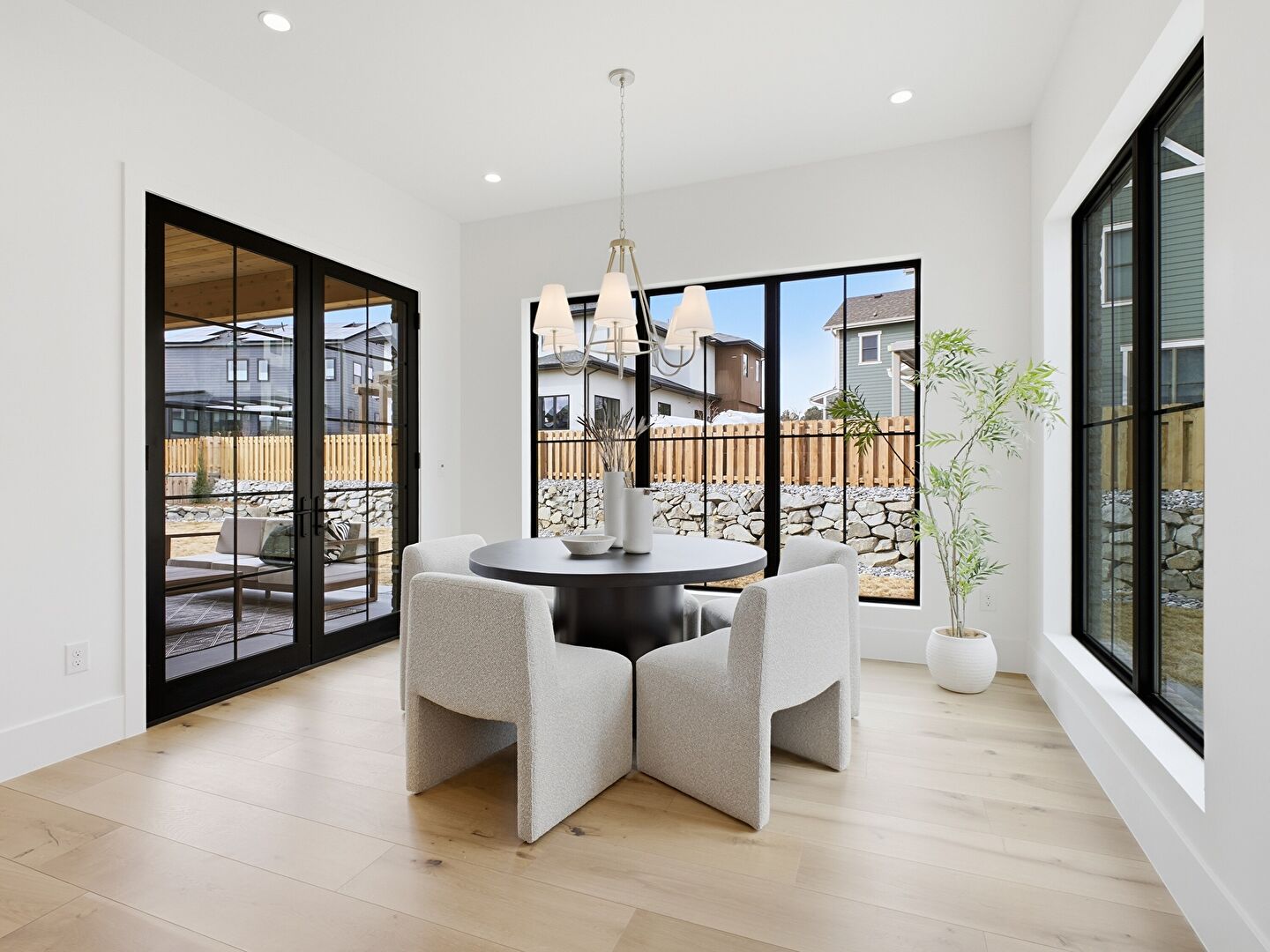 Baseboards Wall, Drywall, Natural Light, Notable Chandelier, Wood Finish Floor, Recessed Lighting