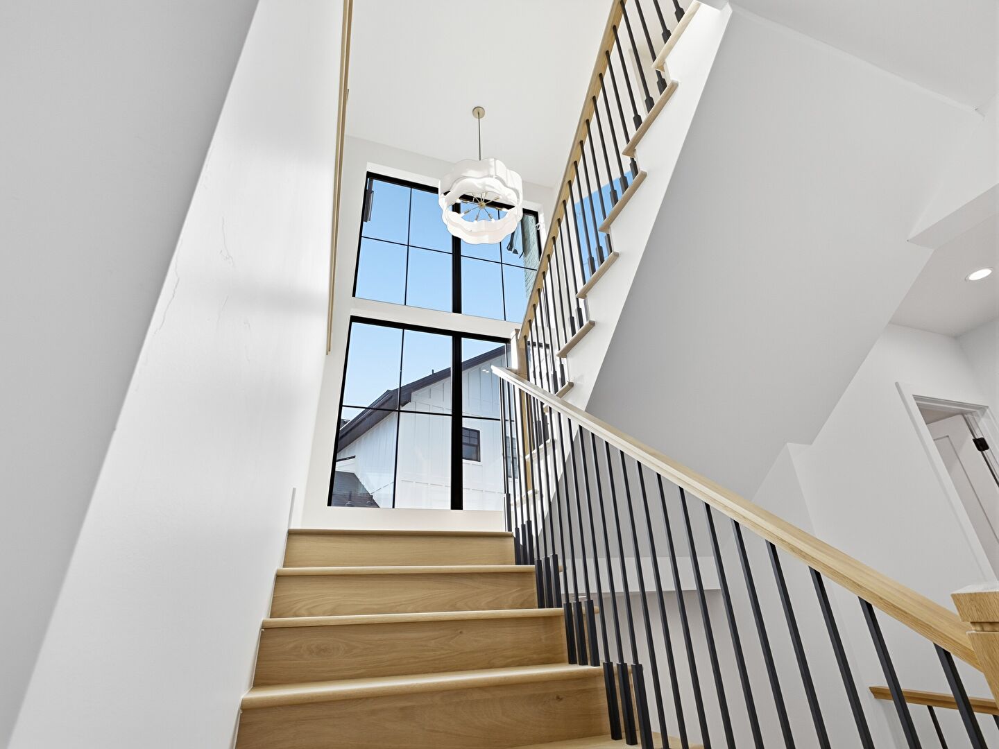 Drywall, High Ceiling, Natural Light, Stairs