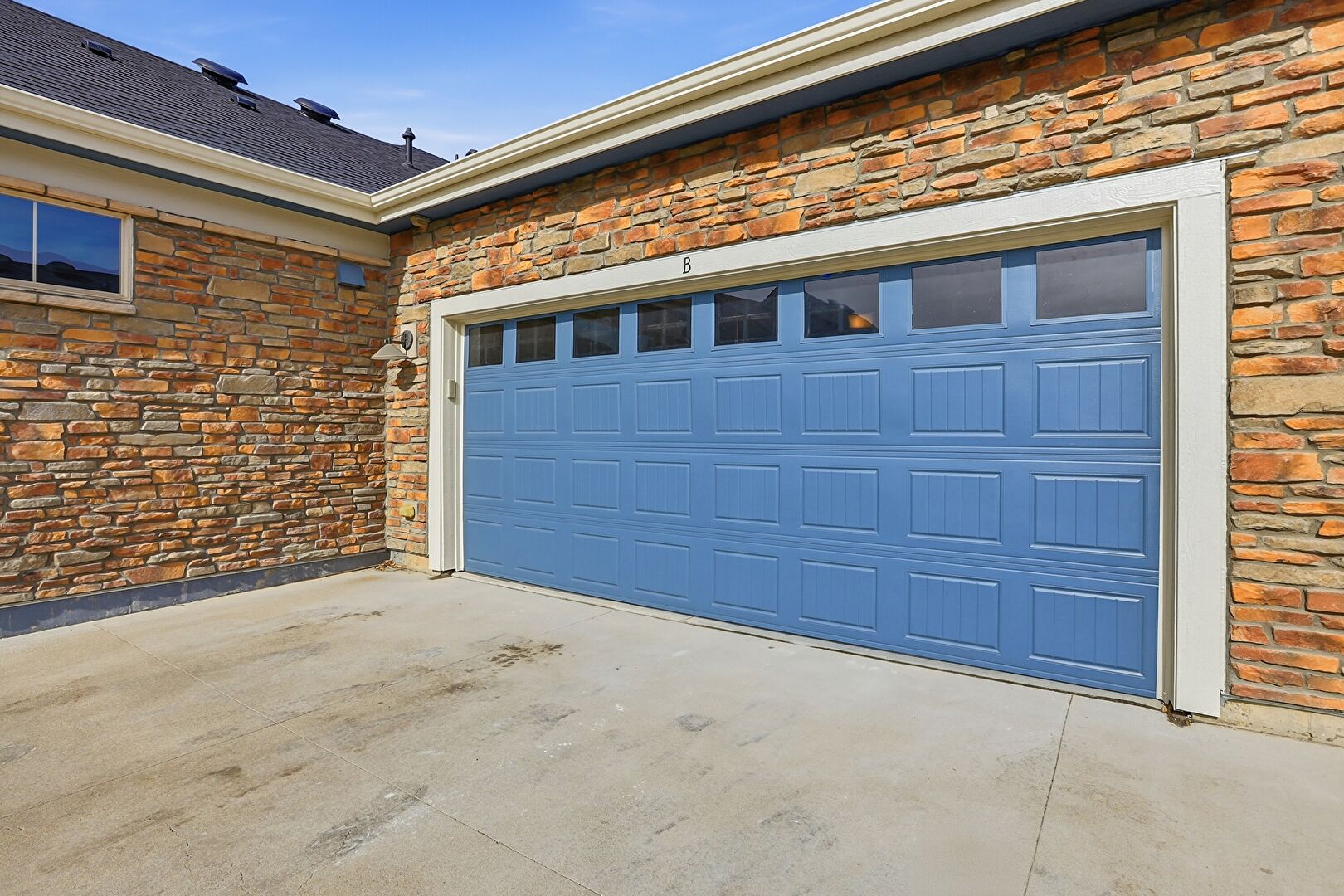Downspout, Gutters, Parking Pad, Patio, Stone Siding, Horizontal Siding