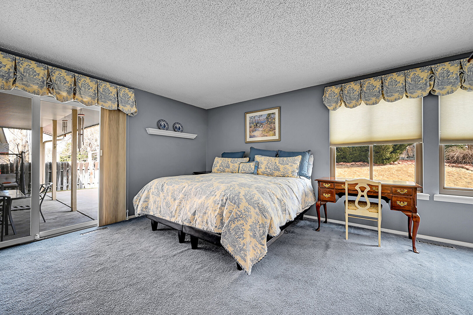 Access To Exterior, Baseboards Wall, Carpet, Drywall, Ensuite Bathroom, Natural Light, Office Area, Textured Ceiling, Vent, Carpet, Drywall, Natural Light, Textured Ceiling