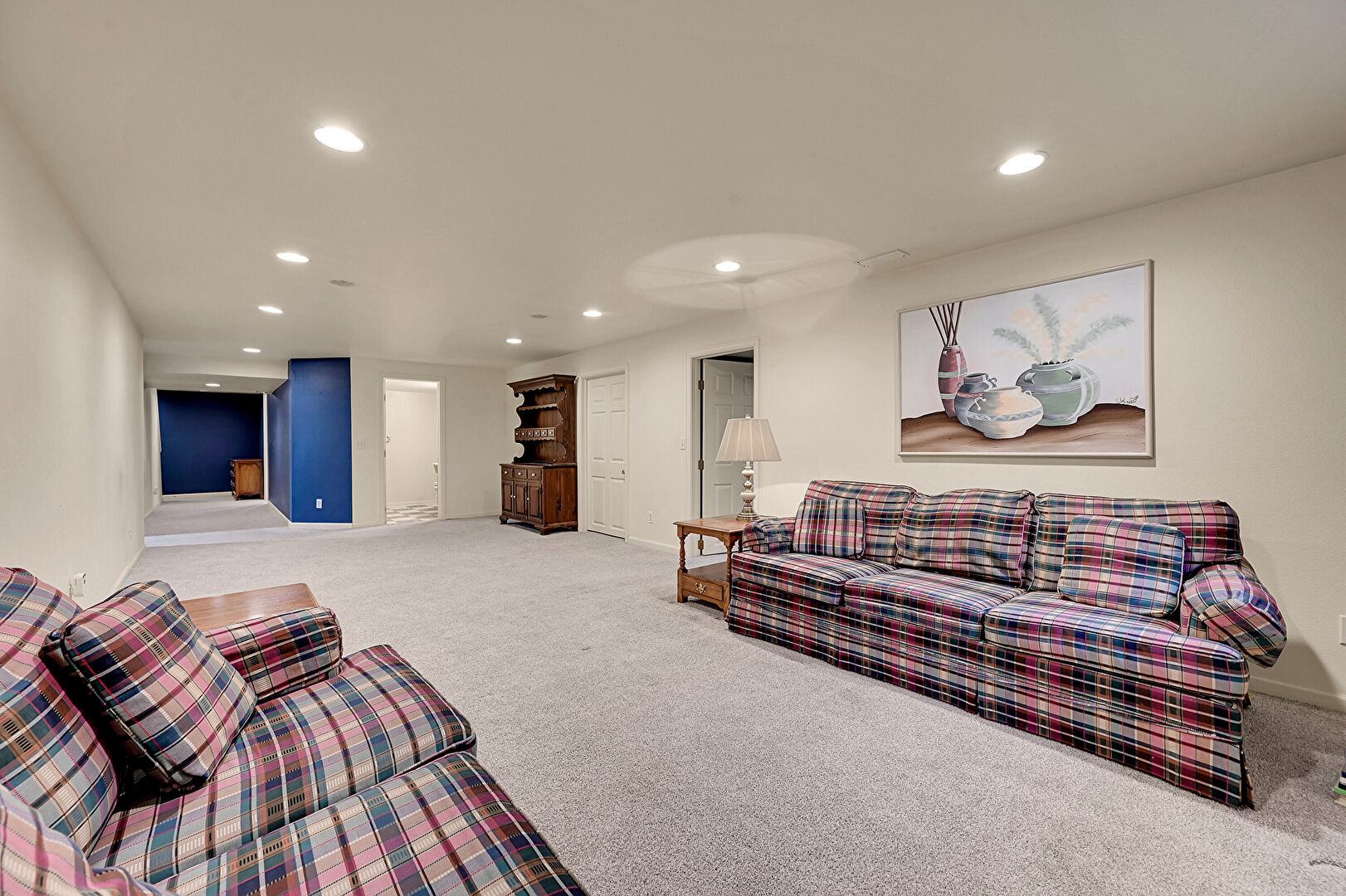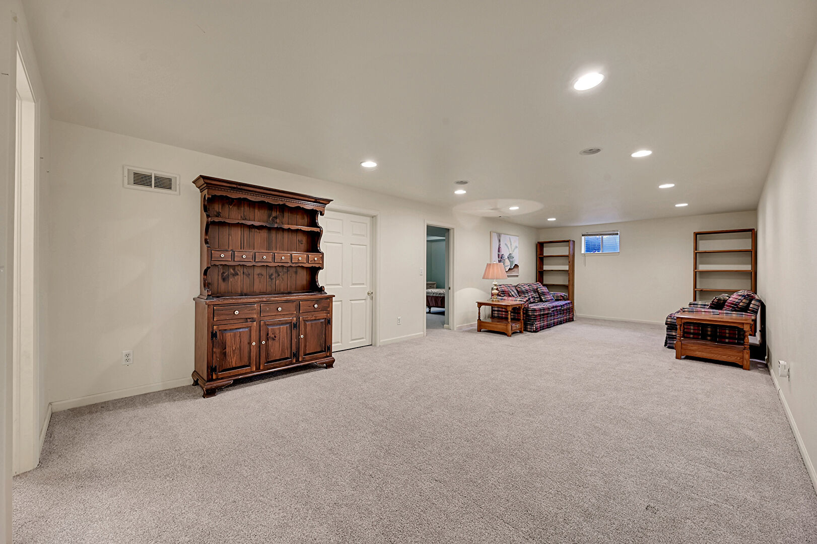 Baseboards Wall, Basement, Carpet, Drywall, Natural Light, Recessed Lighting, Baseboards Wall, Basement, Recessed Lighting, Vent