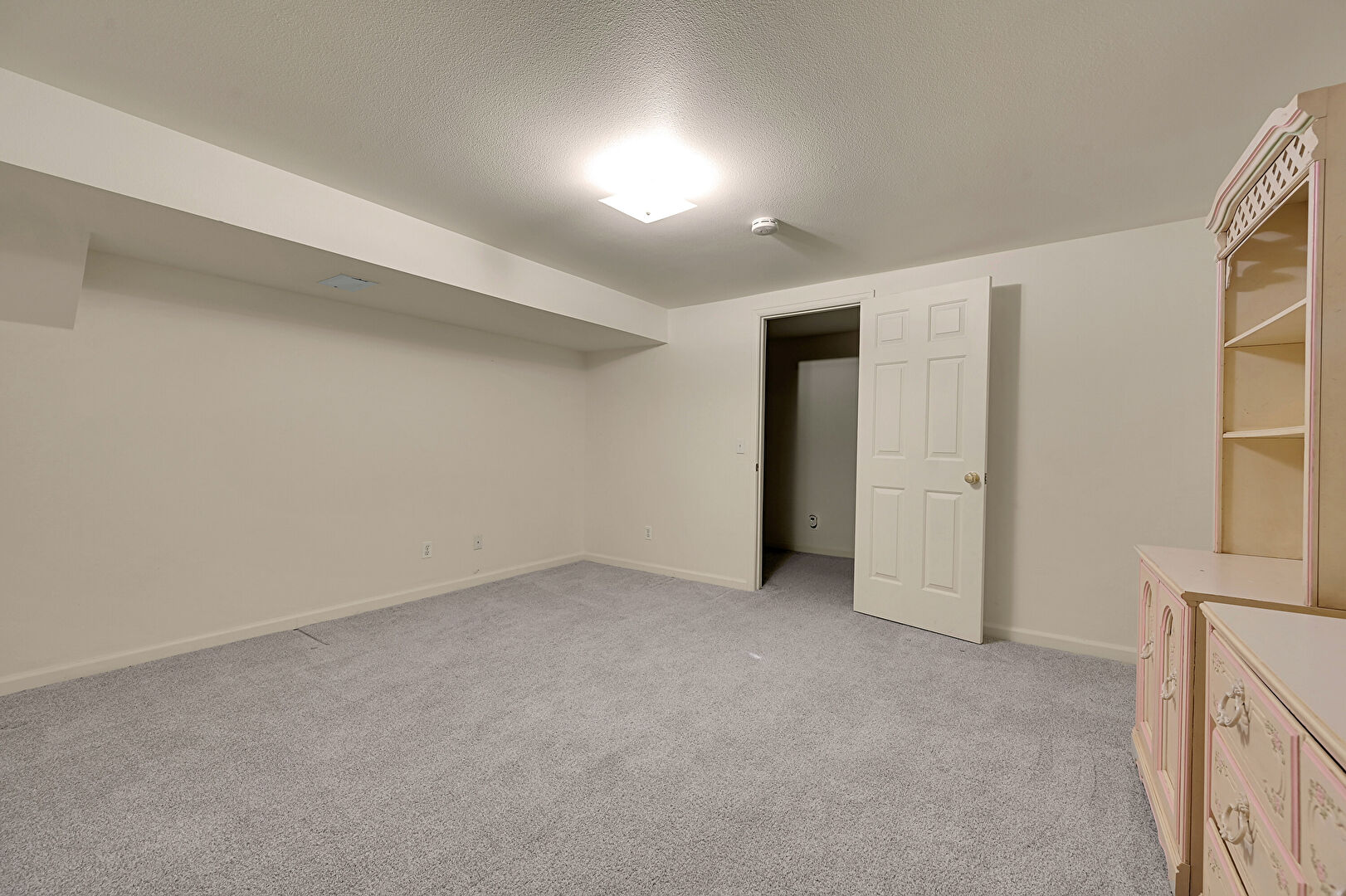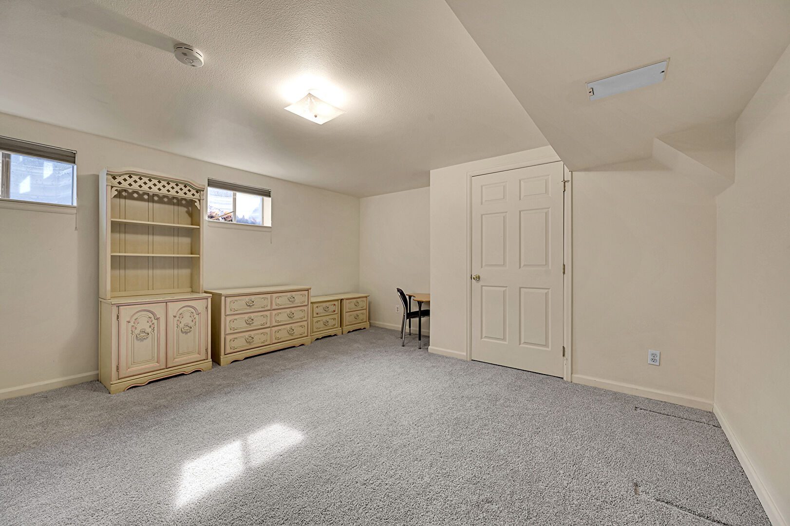 Baseboards Wall, Basement, Carpet, Drywall, Natural Light, Smoke Carbon Monoxide Detector, Textured Ceiling, Baseboards Wall, Textured Ceiling