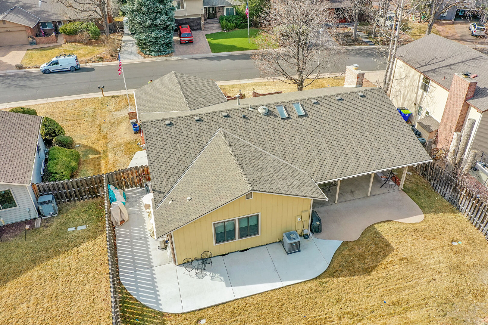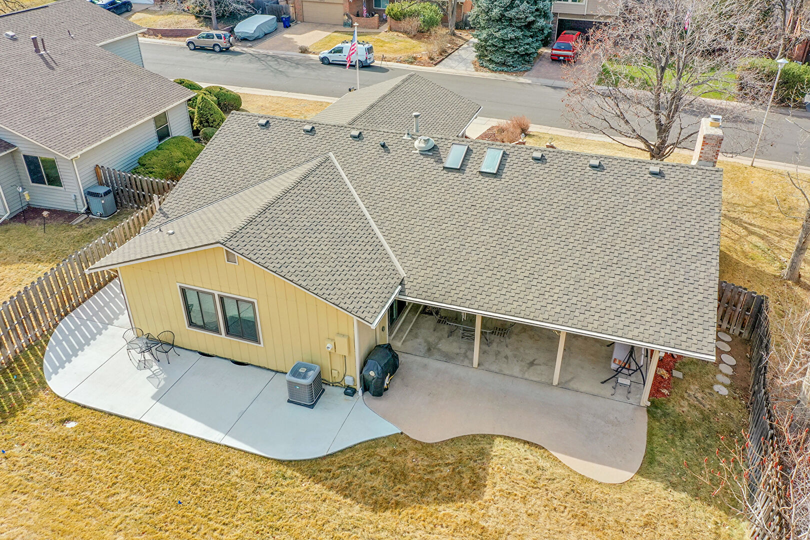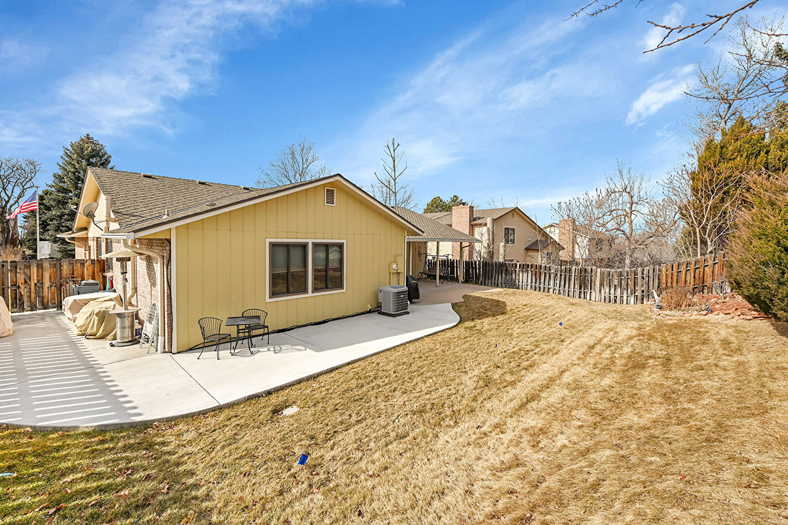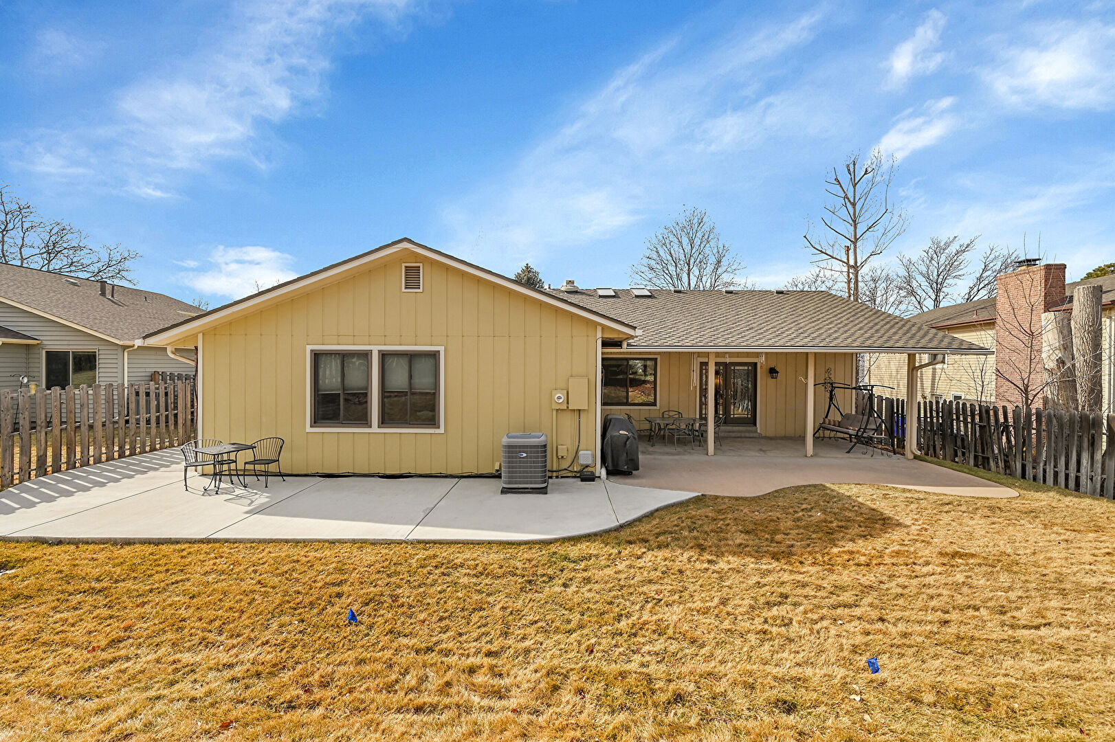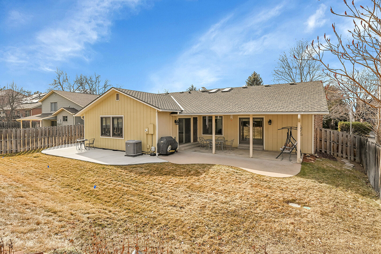 Board Batten Siding, Central Ac, Downspout, Fence, Grill, Gutters, Lawn, Patio, Shingle Roof, Vertical Siding, Downspout, Fence, Grill