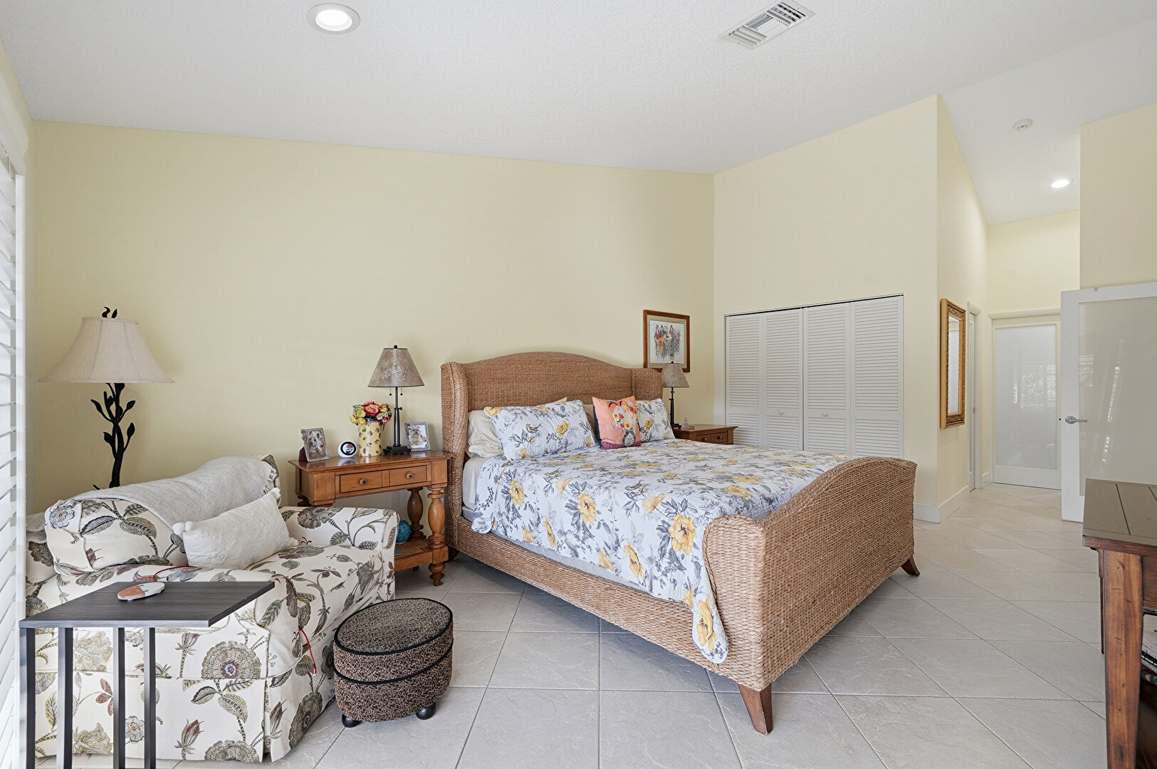 Baseboards Wall, Closet, Drywall, High Ceiling, Natural Light, Recessed Lighting, Textured Ceiling, Tile Floor, Vaulted Ceiling, Vent, Baseboards Wall, Textured Ceiling, Vent