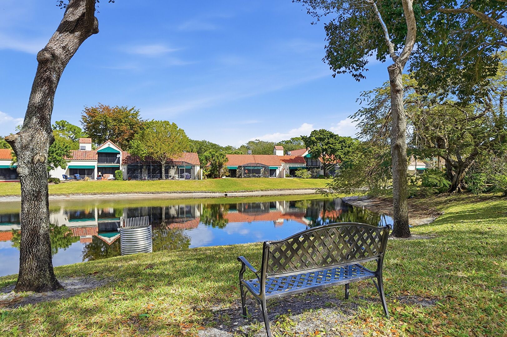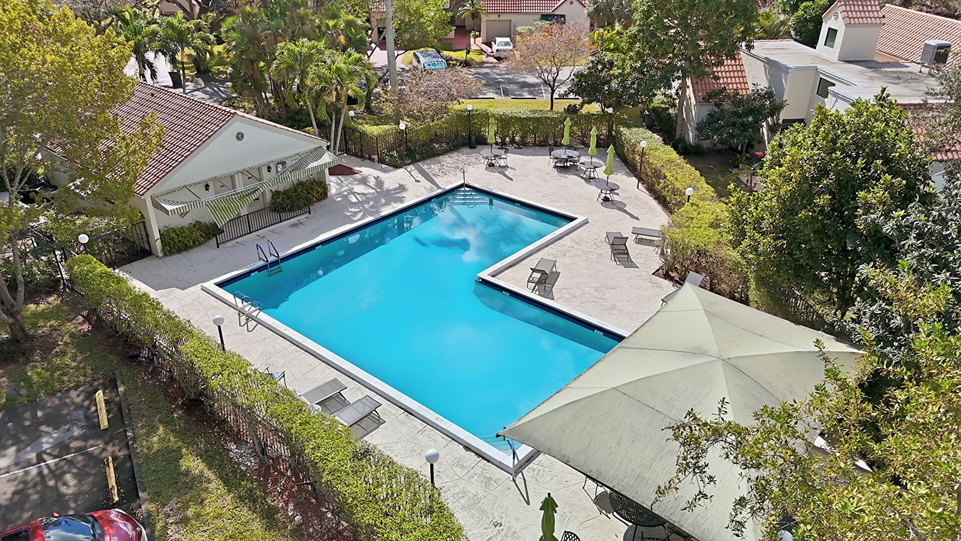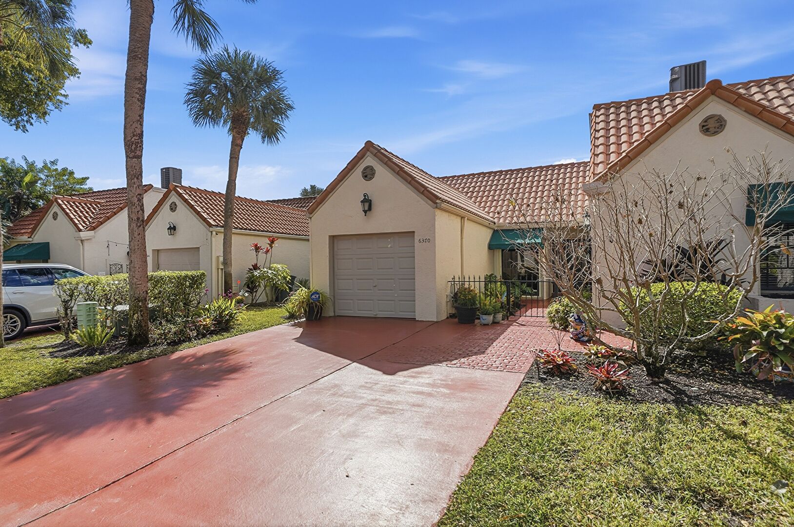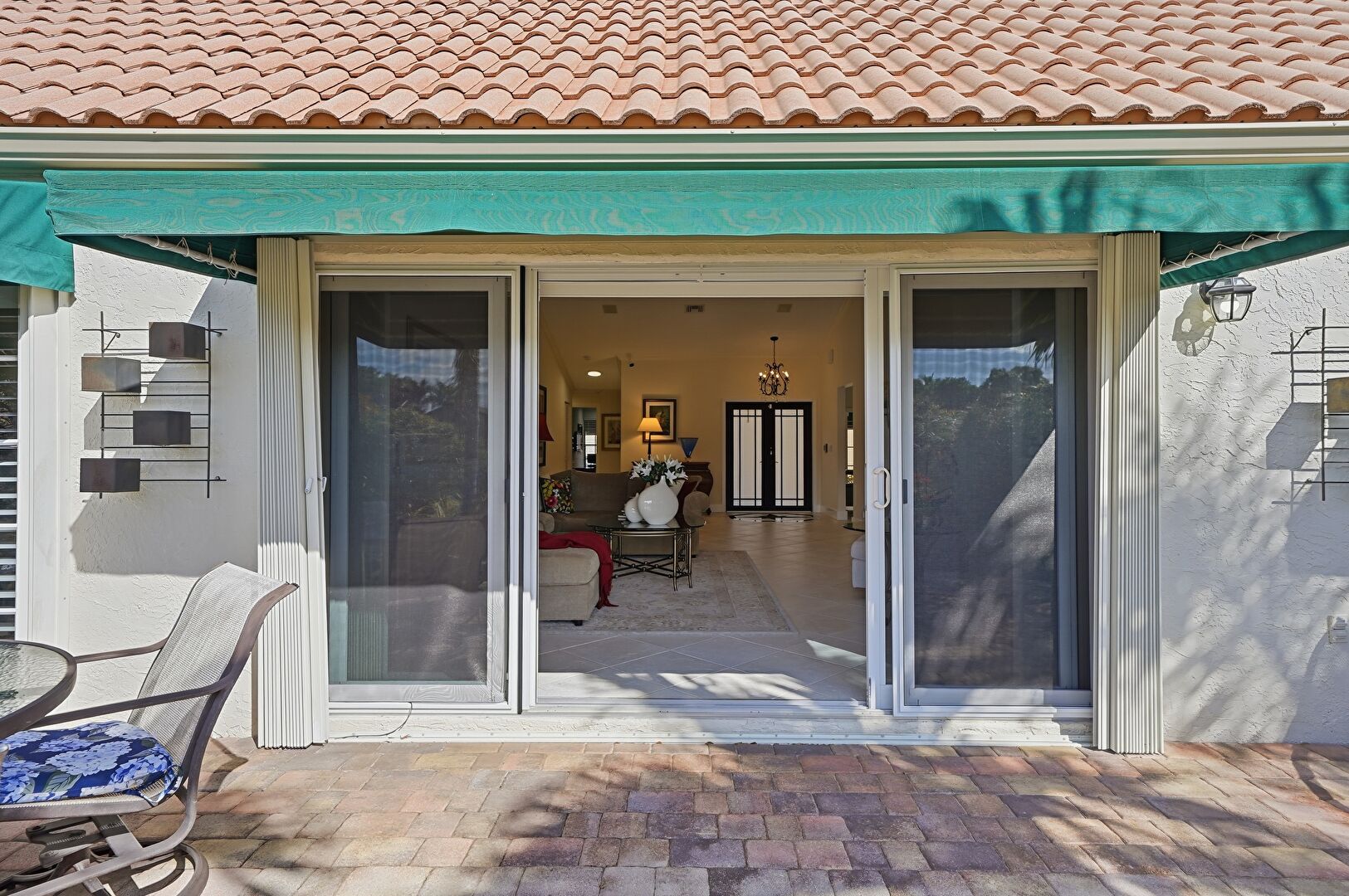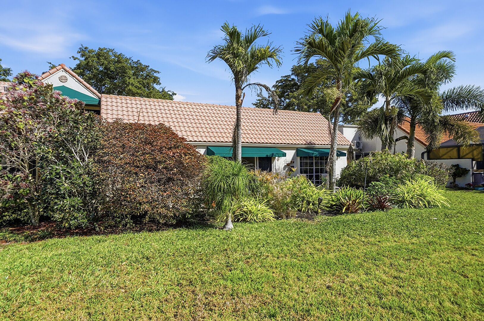 Awning, Lawn, Tile Roof, Stucco Siding