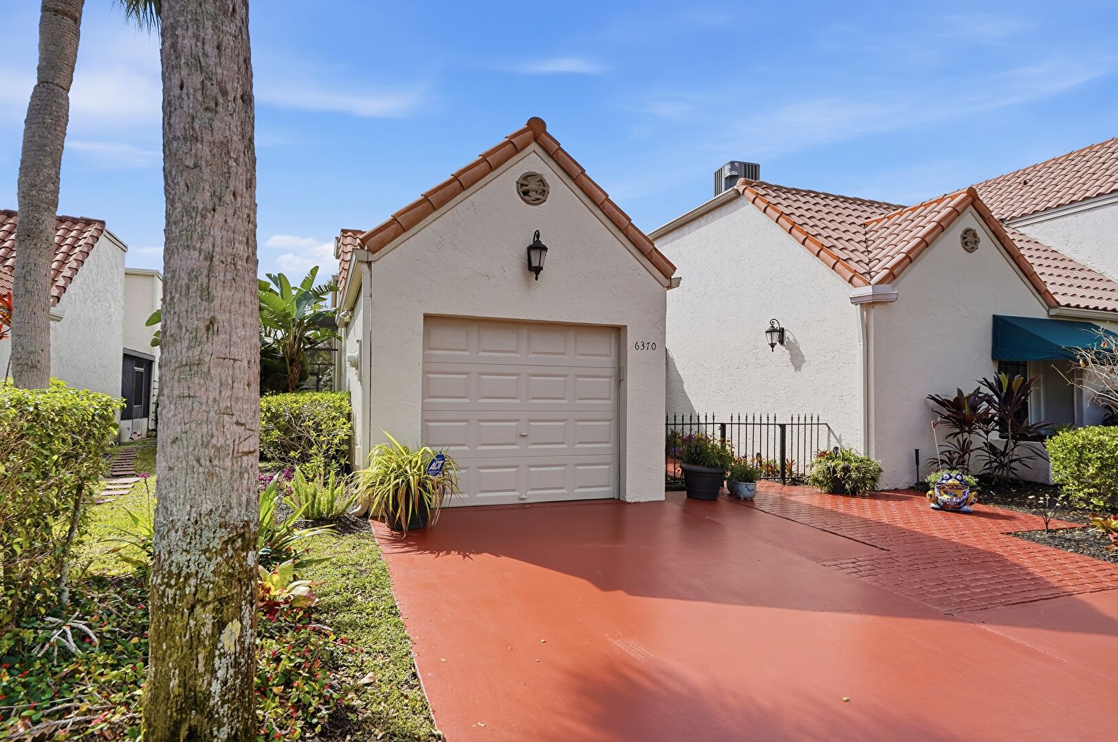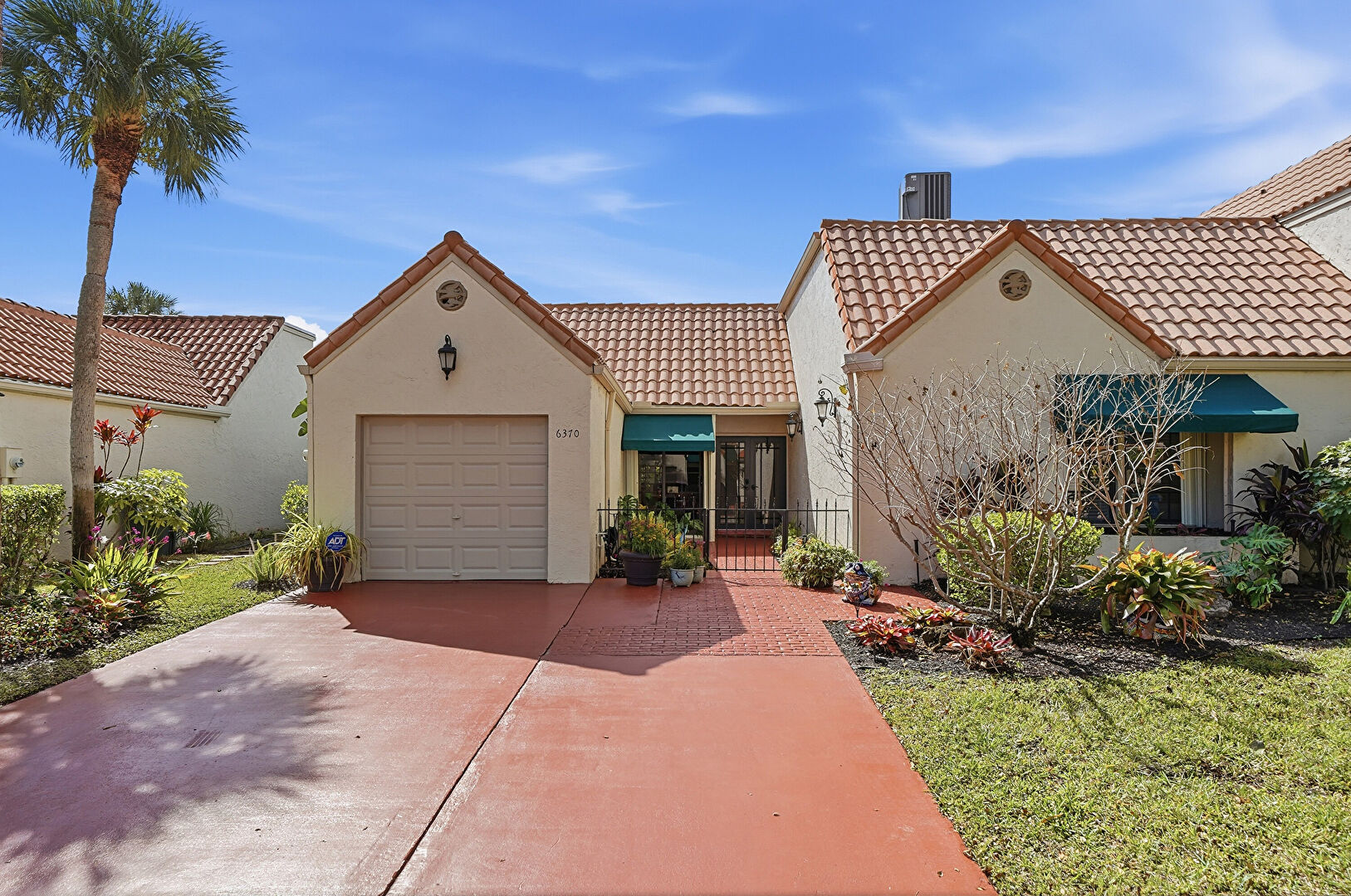 Awning, Driveway, Fence, French Doors, Stucco Siding, Tile Roof, Gate