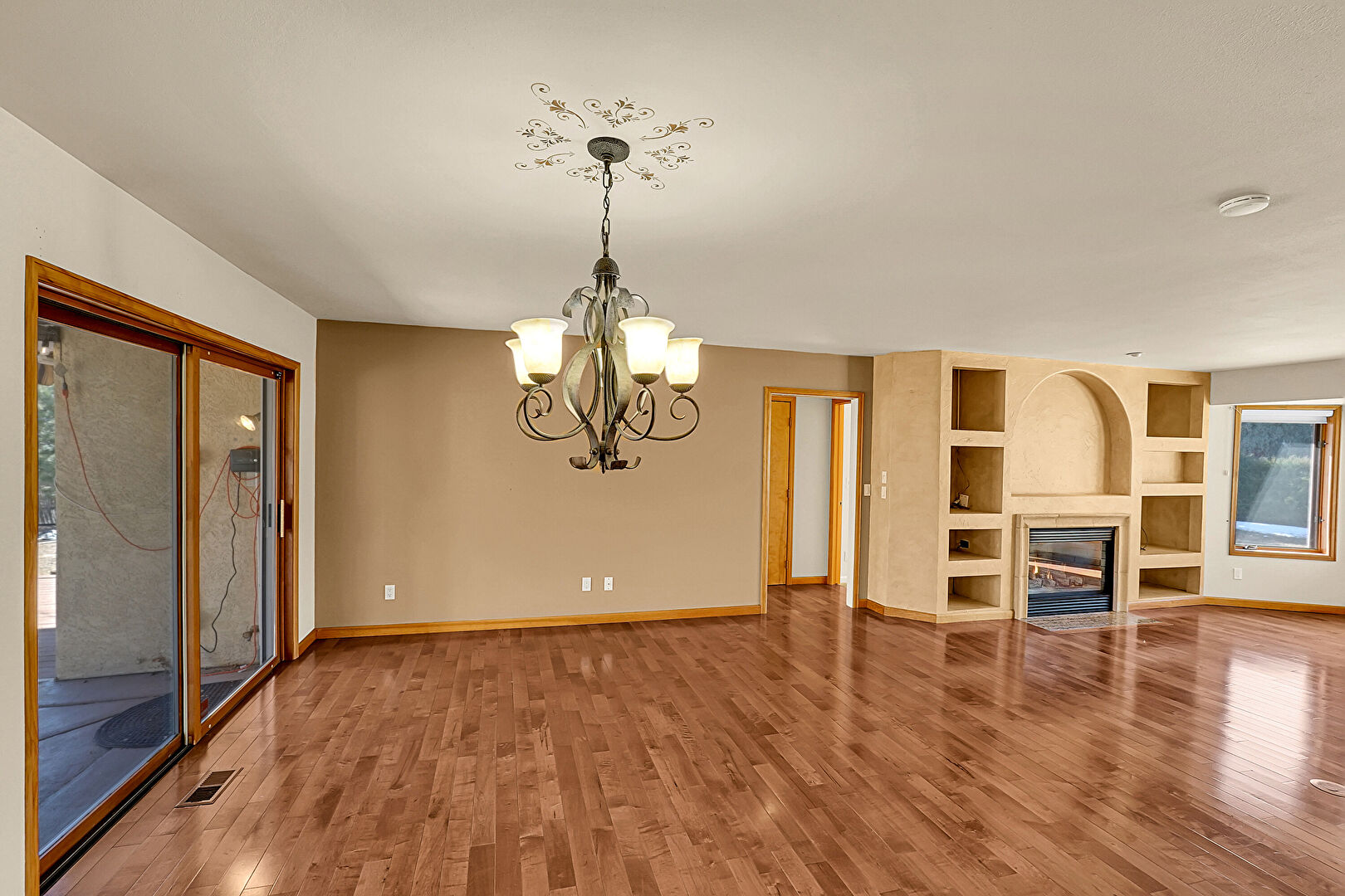 Arched Walkways, Baseboards Wall, Built In Shelves, Drywall, Fireplace, Natural Light, Notable Chandelier, Vent, Wood Finish Floor, Baseboards Wall, Natural Light, Wood Finish Floor