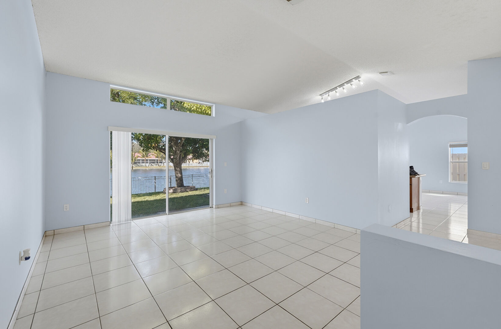Baseboards Wall, Drywall, High Ceiling, Natural Light, Tile Floor, Vaulted Ceiling, Water View, Waterfront, Textured Ceiling, Tile Floor