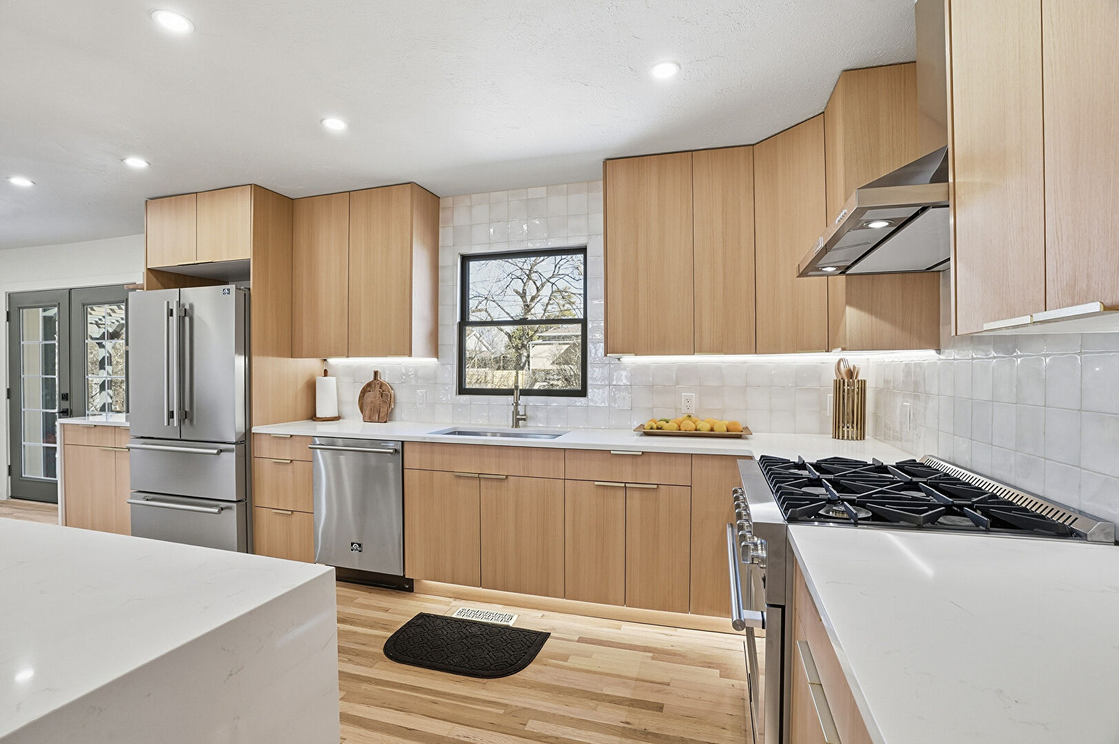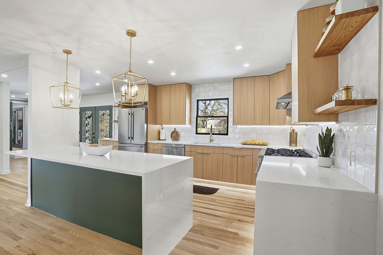 Baseboards Wall, Drywall, French Doors, Natural Light, Notable Chandelier, Recessed Lighting, U Shaped Kitchen, Vent, Wood Finish Floor, Baseboards Wall, Drywall, Natural Light, Recessed Lighting, Vent, Wood Finish Floor