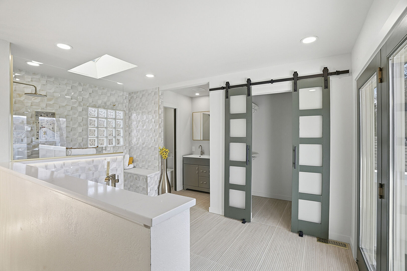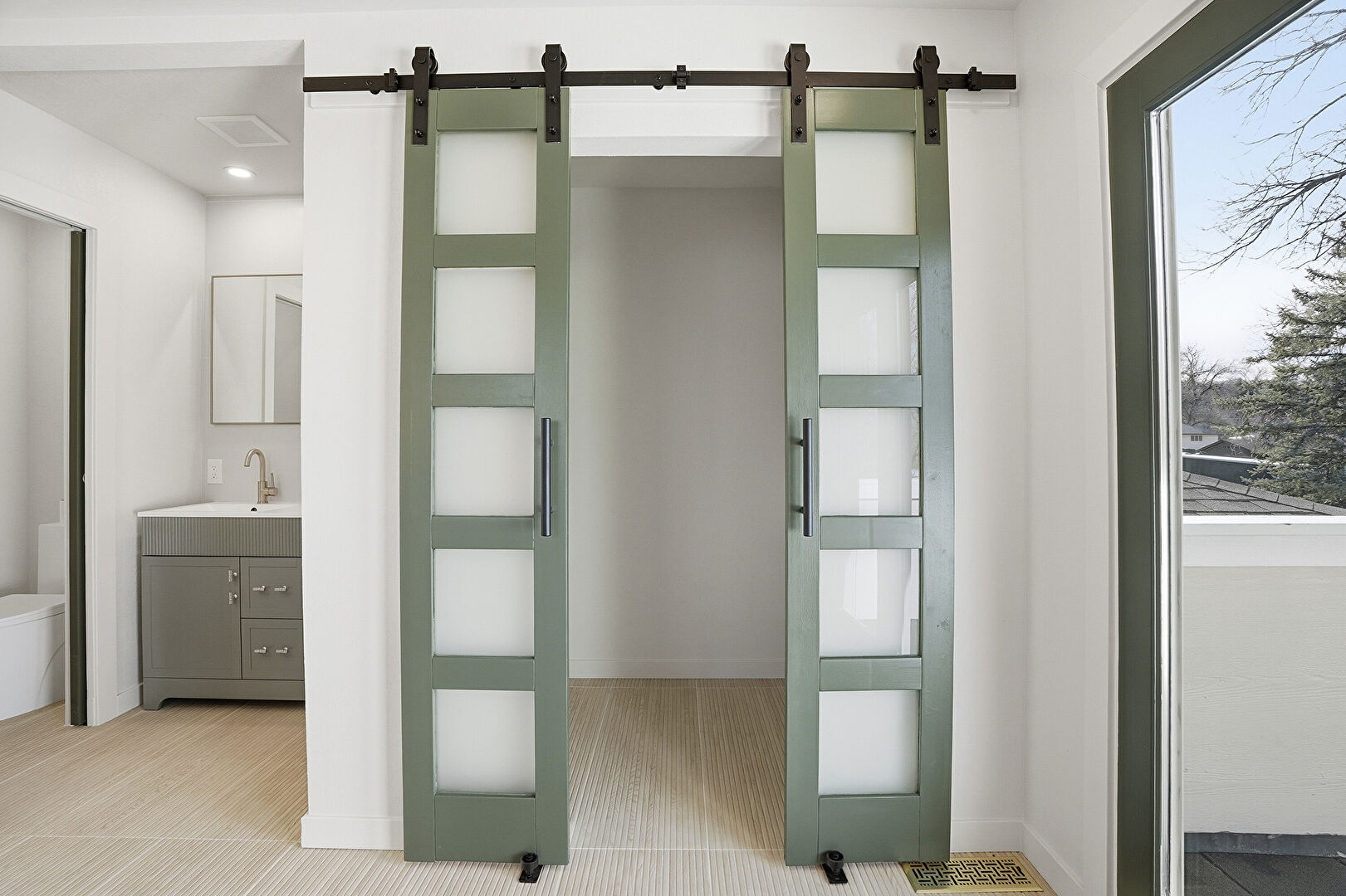 Barn Door, Drywall, Natural Light, Recessed Lighting, Vent, Baseboards Wall