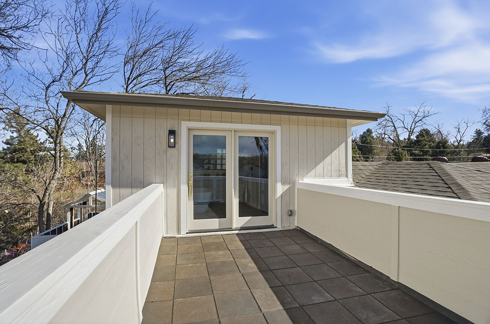 Balcony, Patio, Shingle Roof, Patio, Vertical Siding