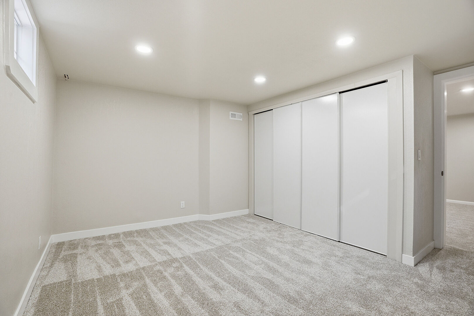 Baseboards Wall, Basement, Carpet, Closet, Drywall, Natural Light, Recessed Lighting, Vent, Closet, Recessed Lighting
