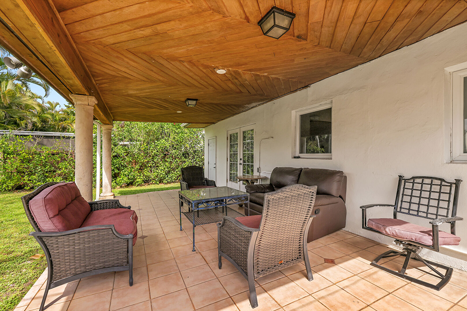 Fence, French Doors, Lawn, Outdoor Structure, Patio, Stucco Siding