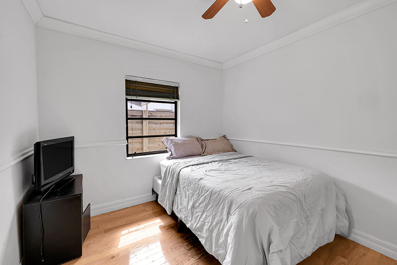 Baseboards Wall, Ceiling Fan, Crown Molding, Drywall, French Doors, Natural Light, Tile Floor, Drywall, French Doors
