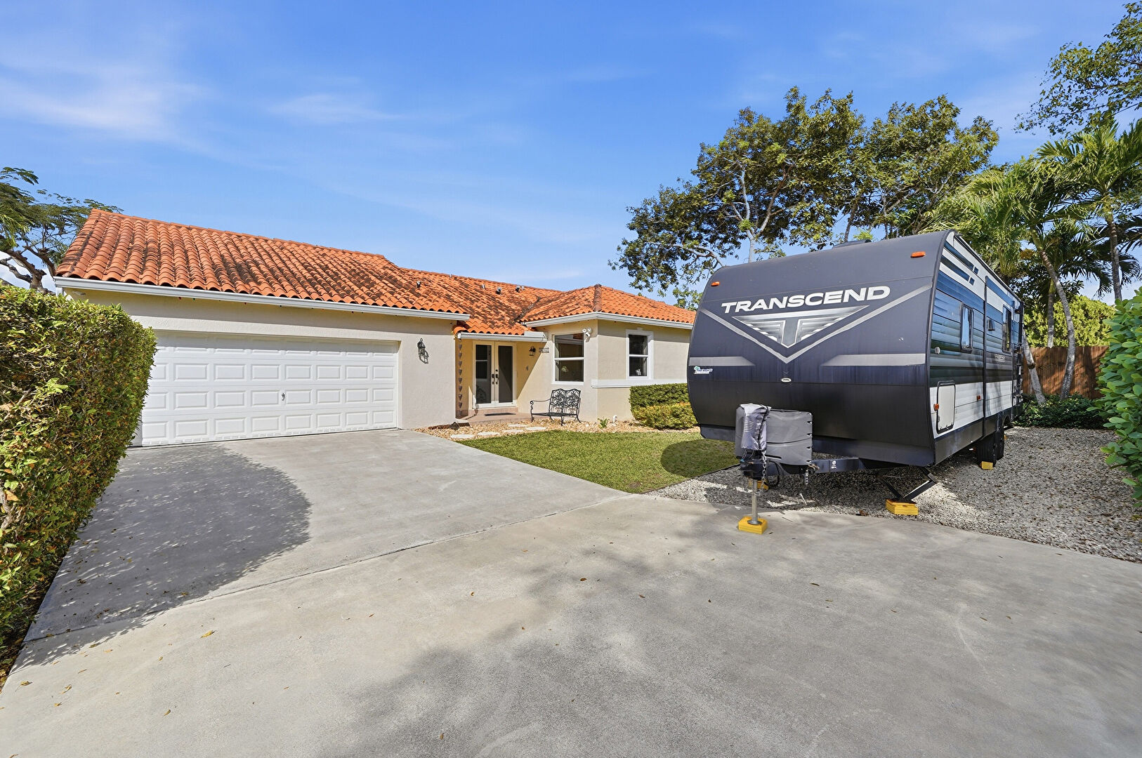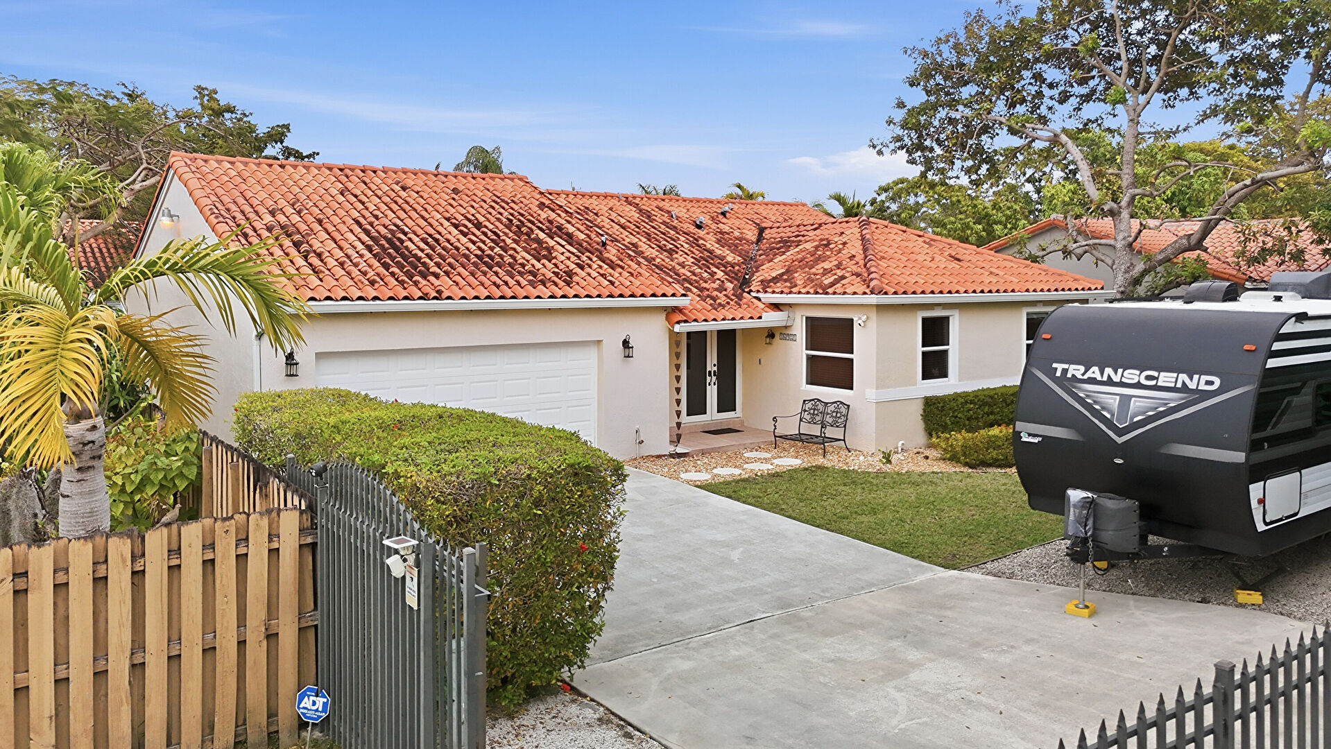 Central Ac, Downspout, Driveway, Fence, French Doors, Gate, Gutters, Lawn, Parking Pad, Stucco Siding, Tile Roof, Fence, Gutters, Lawn, Parking Pad, Stucco Siding, Tile Roof