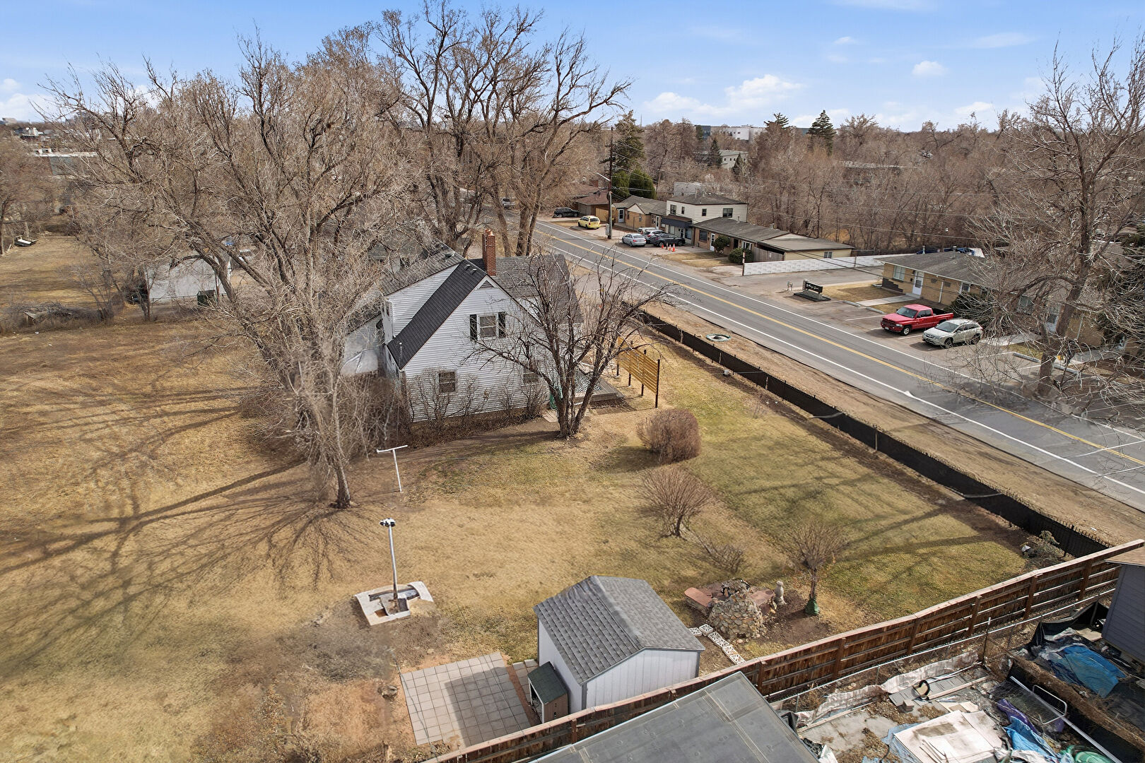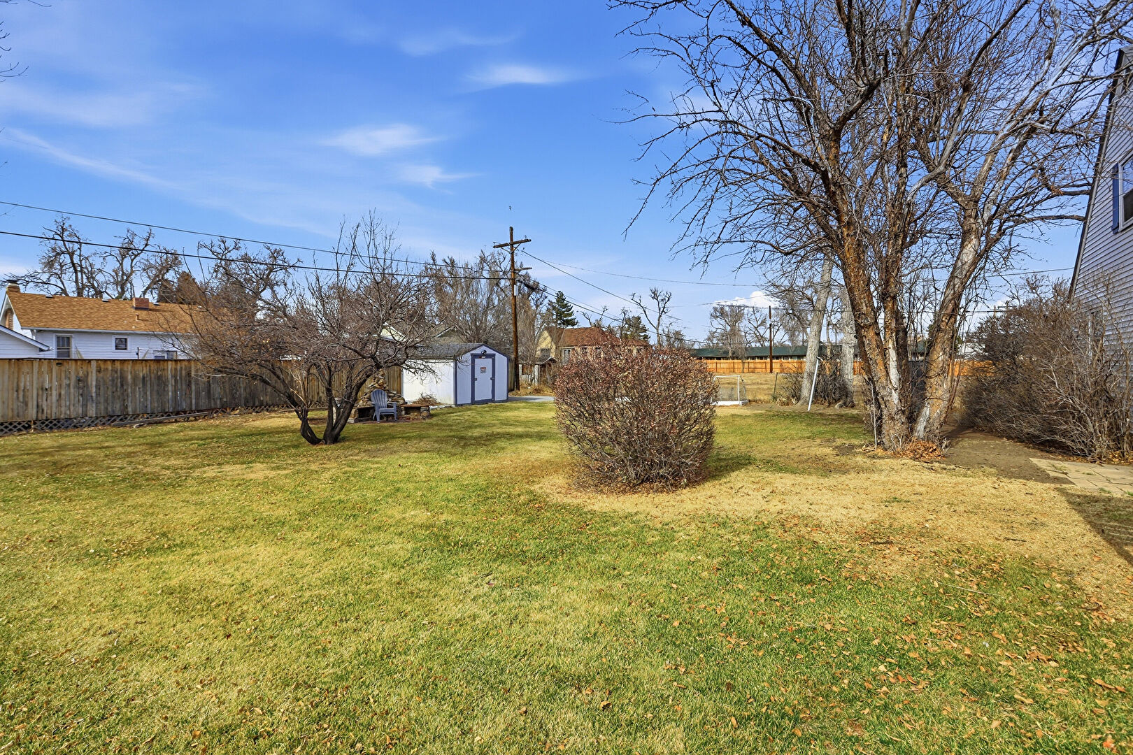 Fence, Lawn, Outdoor Structure, Porch, Residential View, Fence, Lawn, Shed