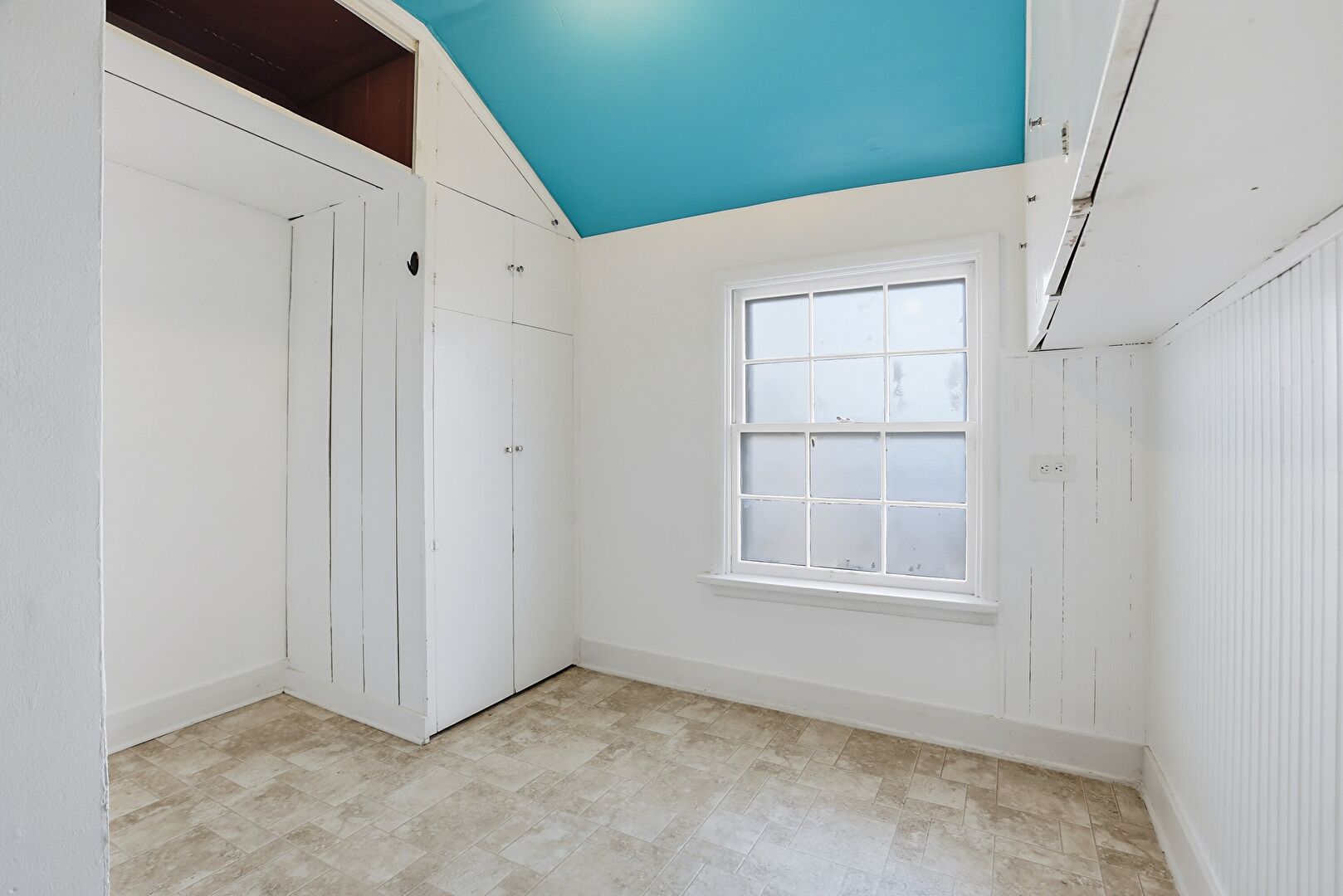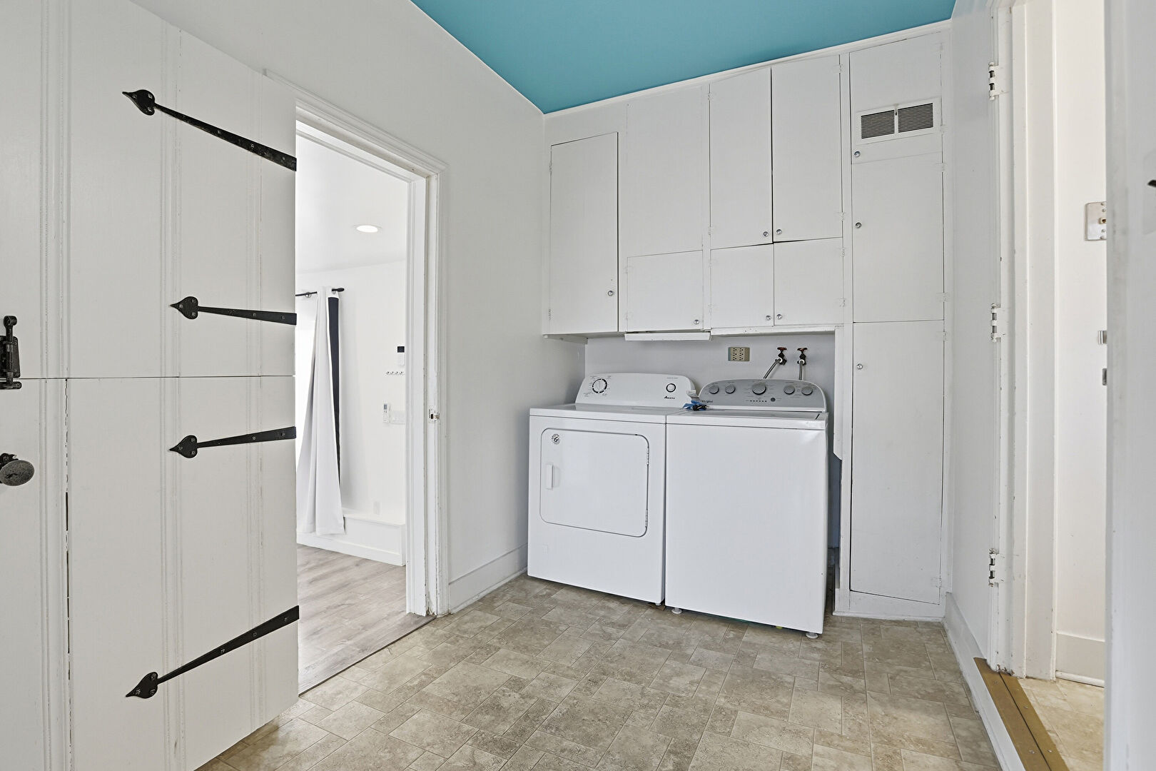 Baseboards Wall, Drywall, Laundry, Natural Light, Stone Finish Floor, Vaulted Ceiling, Vent, Closet, Washer Hookup