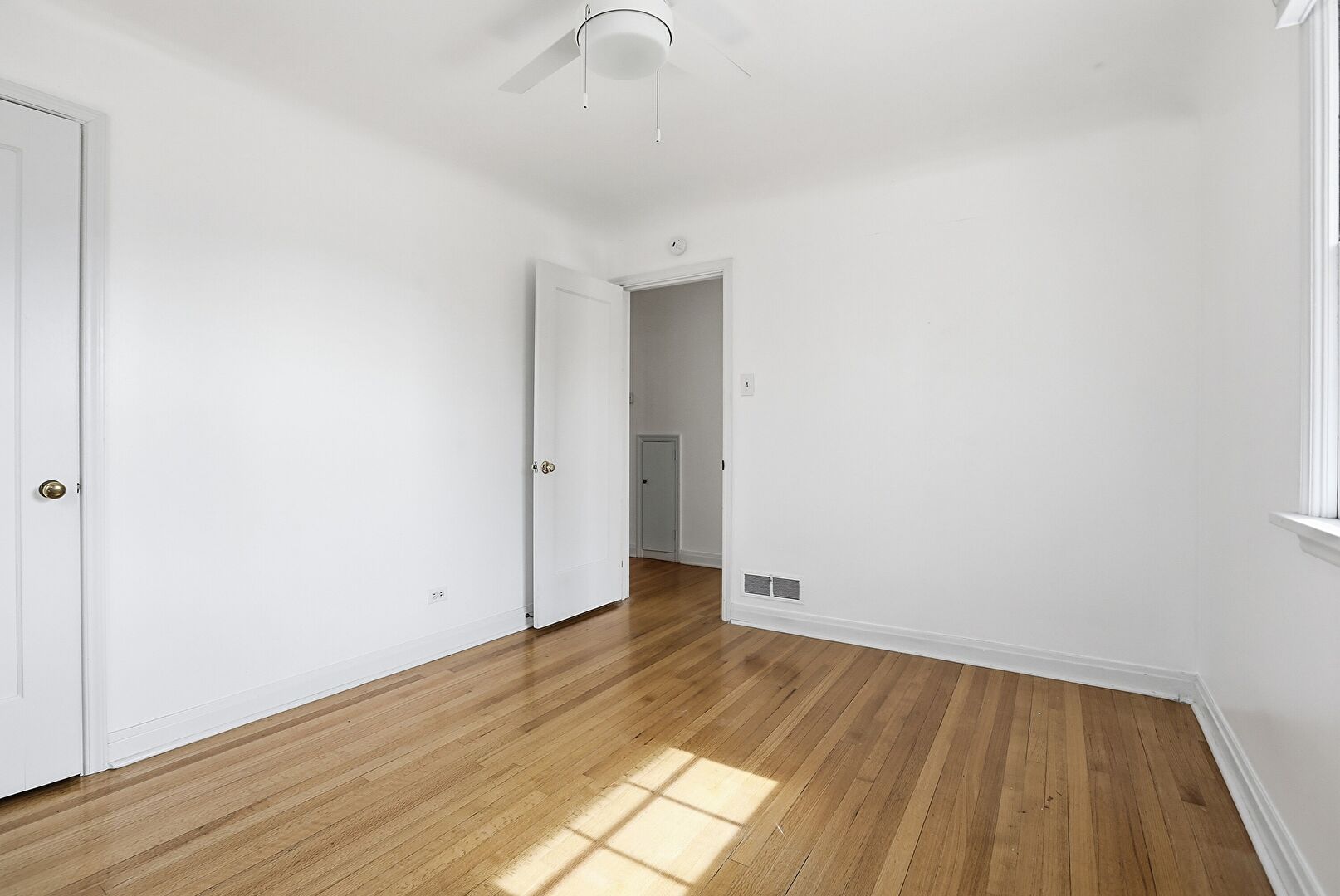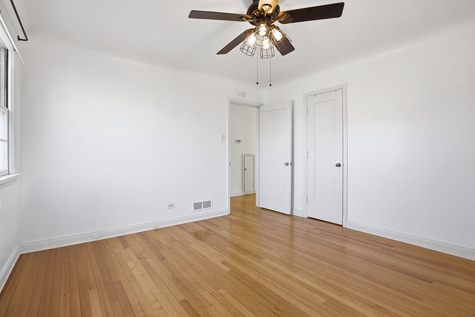 Baseboards Wall, Ceiling Fan, Closet, Drywall, Vent, Wood Finish Floor, Natural Light, Wood Finish Floor