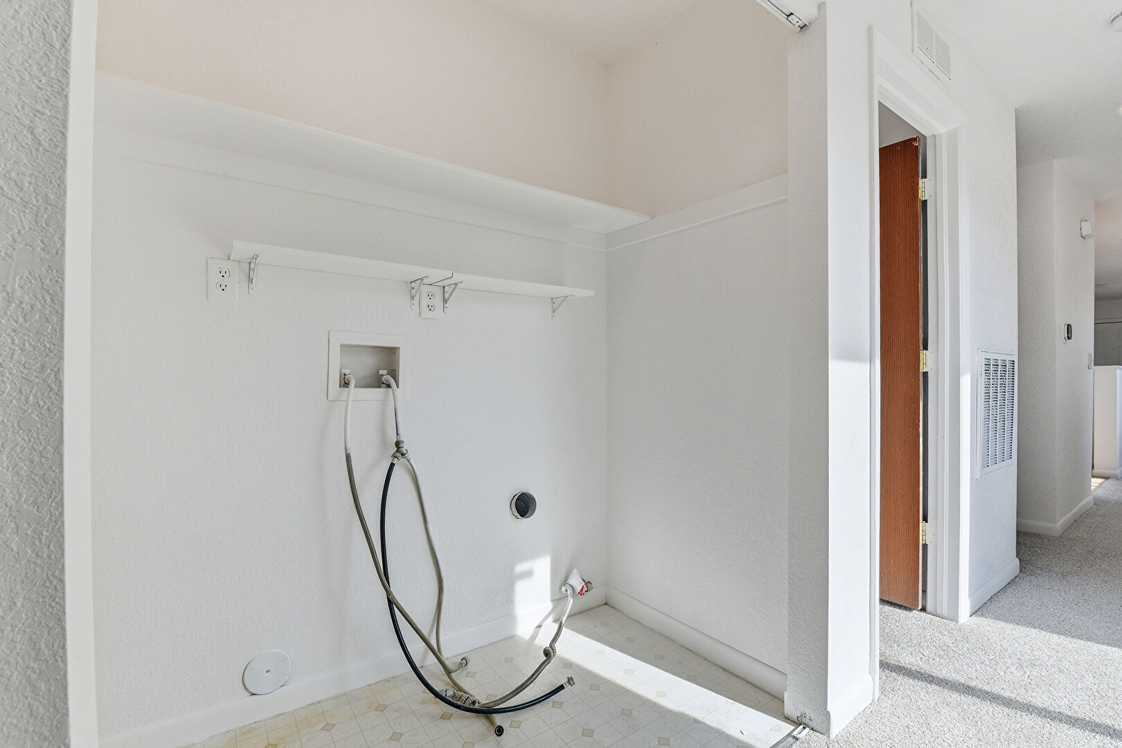 Baseboards Wall, Drywall, Laundry, Textured Wall, Vent, Washer Hookup, Vinyl Floor