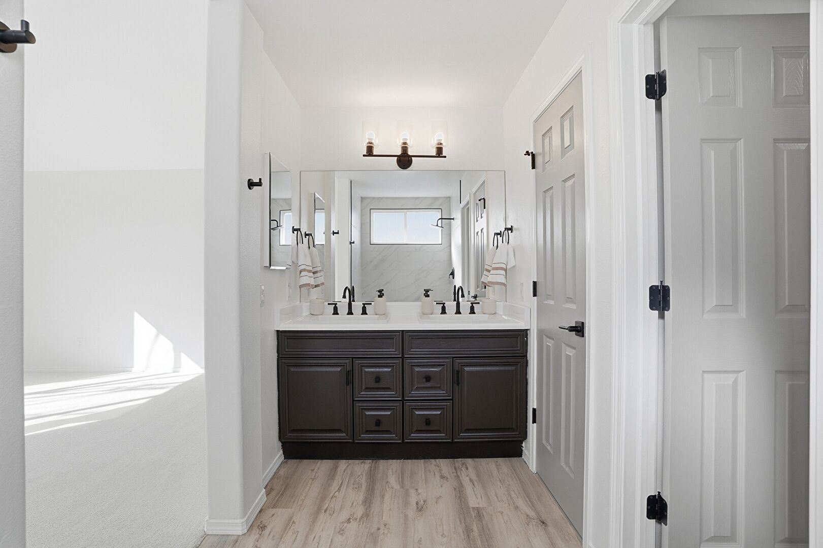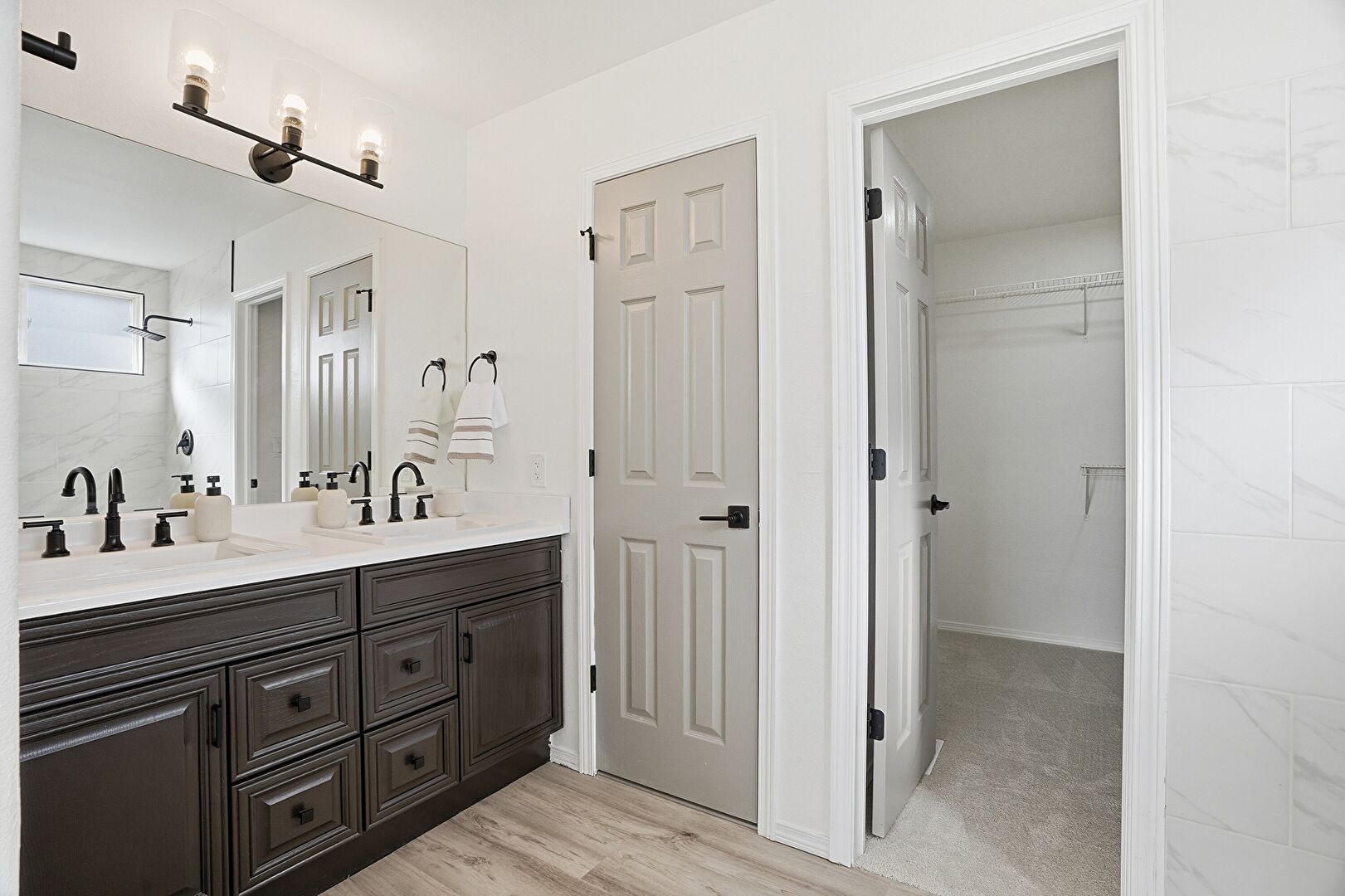 Baseboards Wall, Carpet, Double Vanity, Drywall, Full Bathroom, Natural Light, Walk In Closet, Wood Finish Floor, Drywall, Natural Light