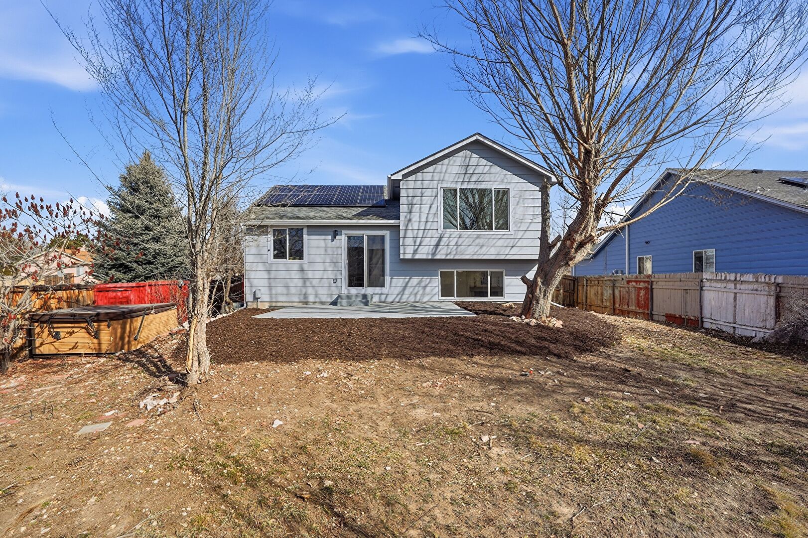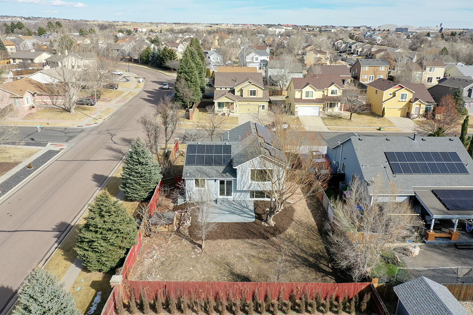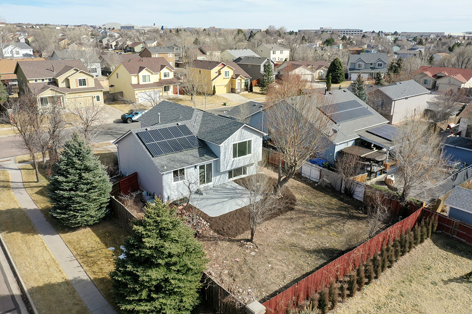 Central Ac, Concrete Foundation, Downspout, Fence, Gate, Gutters, Horizontal Siding, Lawn, Patio, Shingle Roof, Solar Panels, Fence, Horizontal Siding, Solar Panels