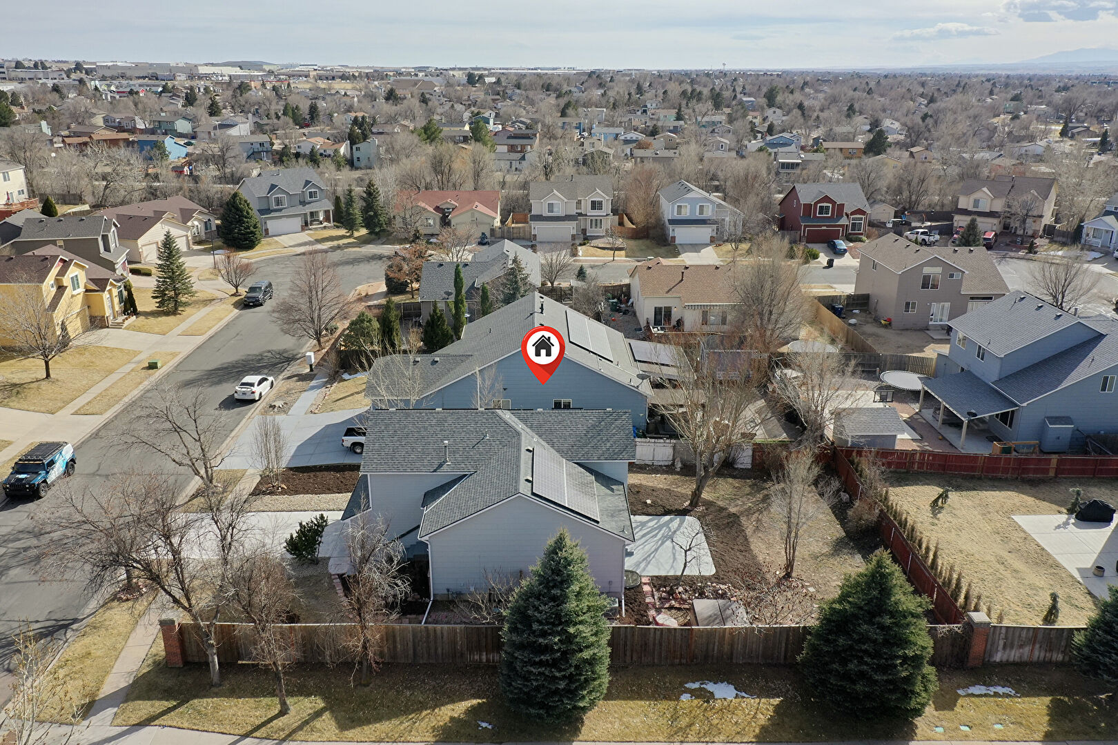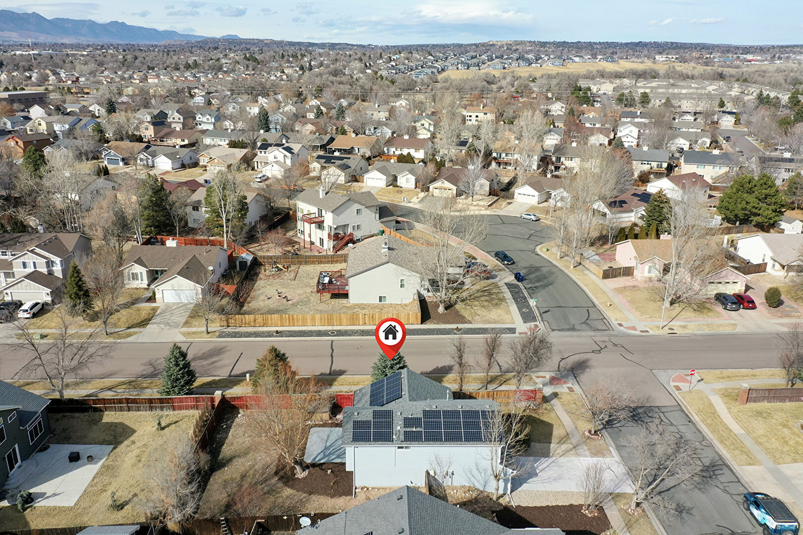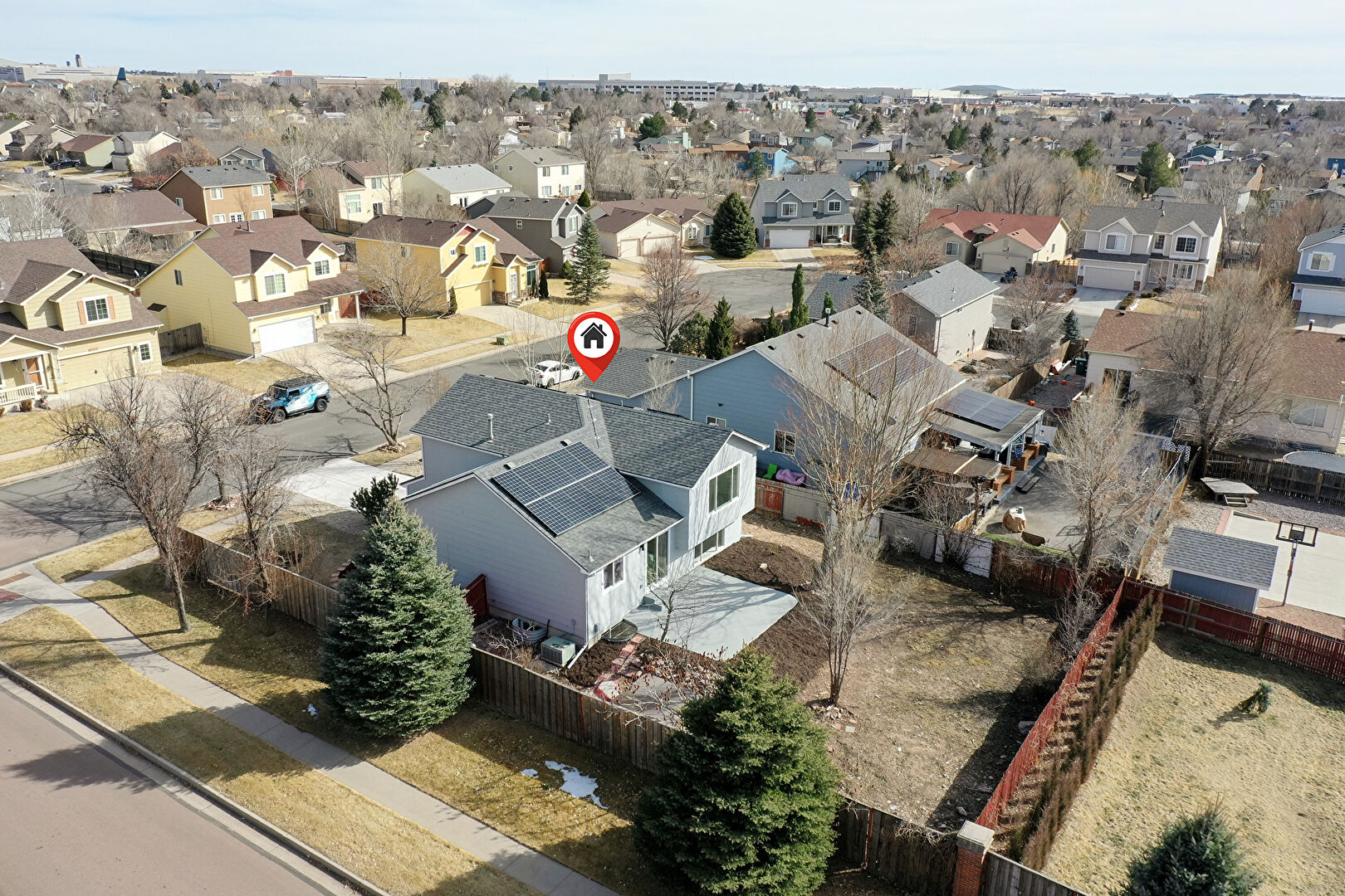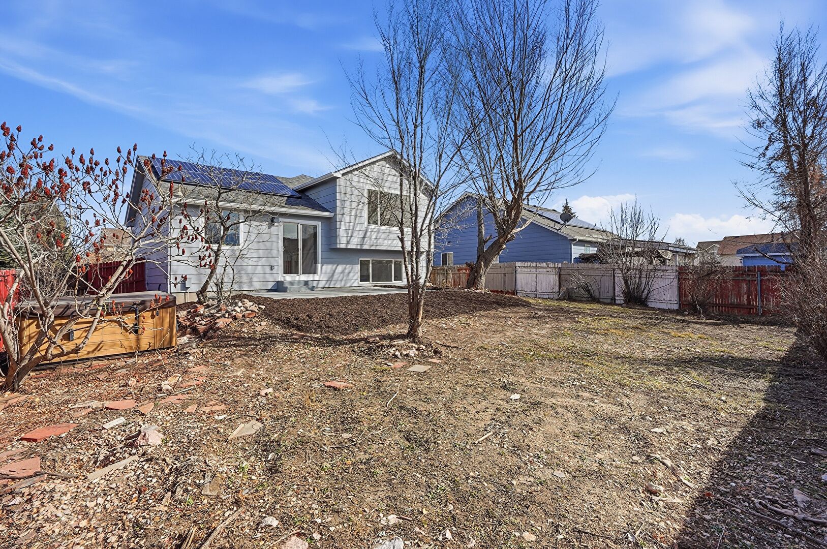 Central Ac, Concrete Foundation, Downspout, Fence, Gate, Gutters, Horizontal Siding, Lawn, Patio, Shingle Roof, Solar Panels, Fence, Horizontal Siding, Solar Panels