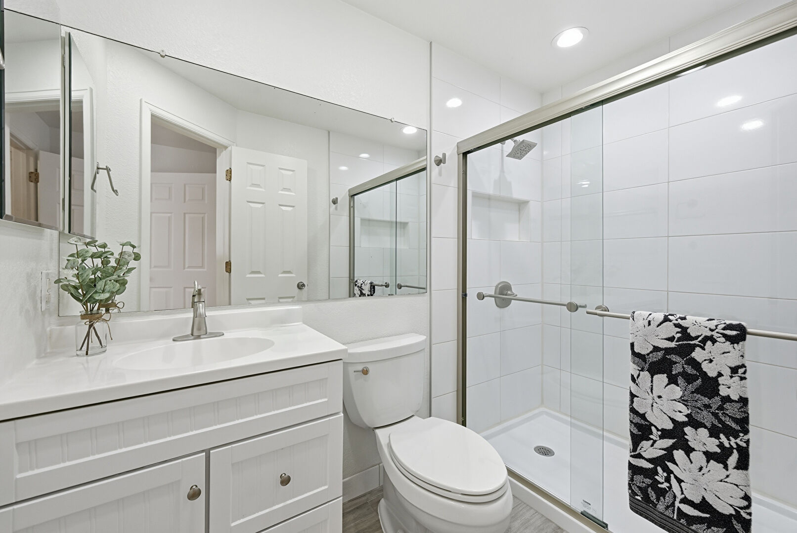 Baseboards Wall, Drywall, Full Bathroom, Recessed Lighting, Vanity