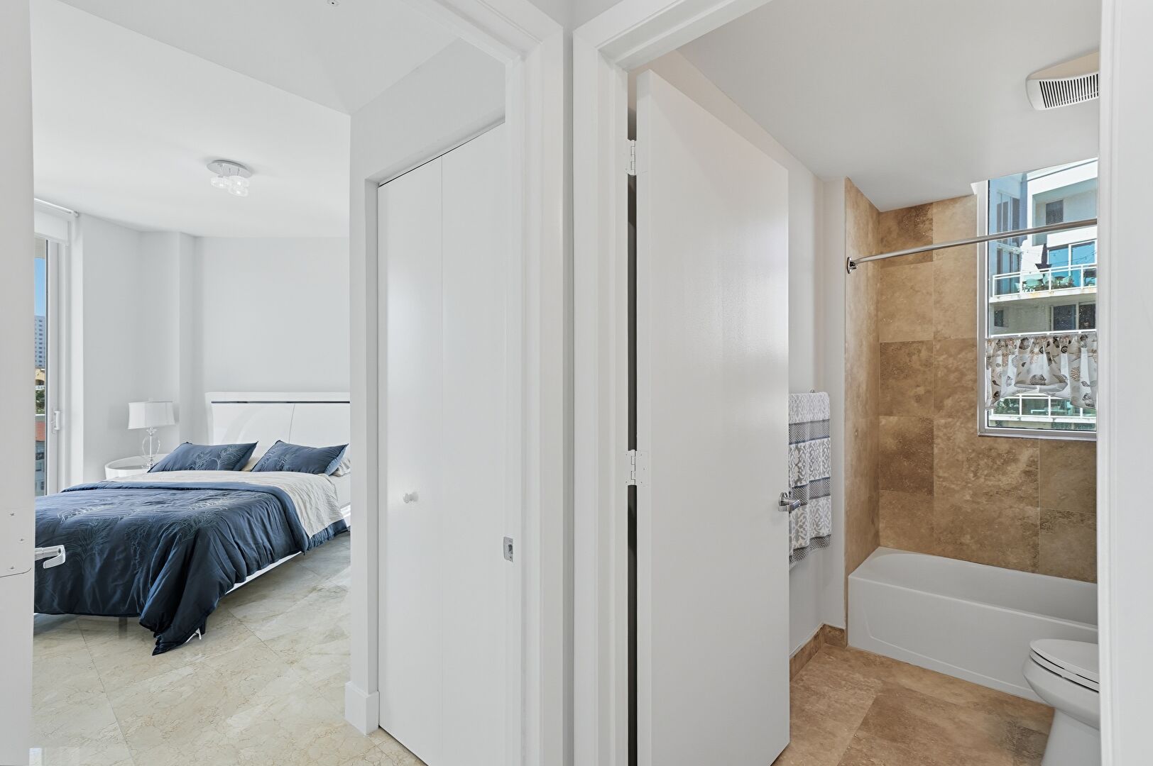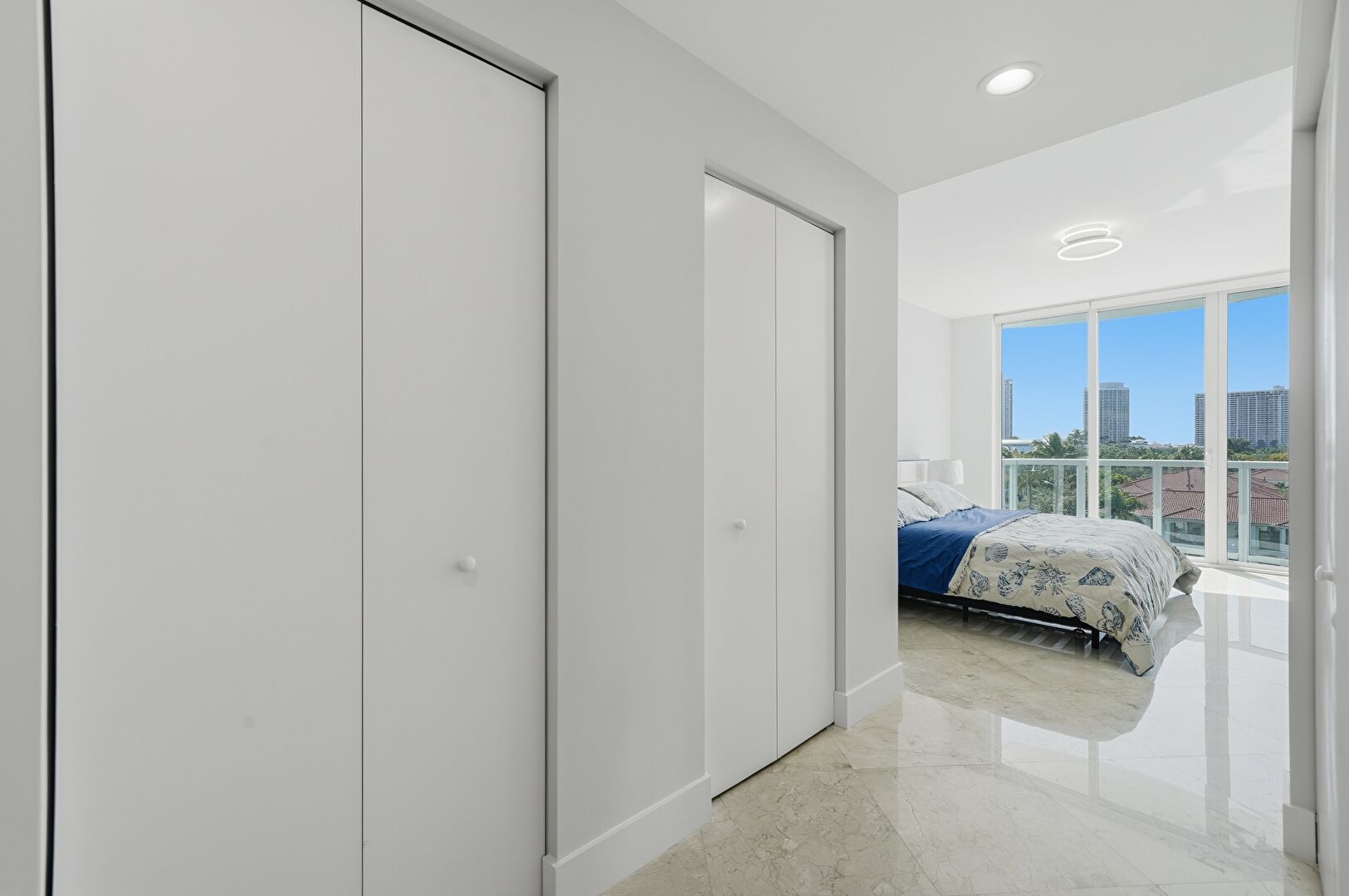 Baseboards Wall, Drywall, Floor Ceiling Windows, Marble Finish Floor, Natural Light, Recessed Lighting, Two Closets, Vent, Baseboards Wall, City View, Floor Ceiling Windows, Natural Light, Recessed Lighting