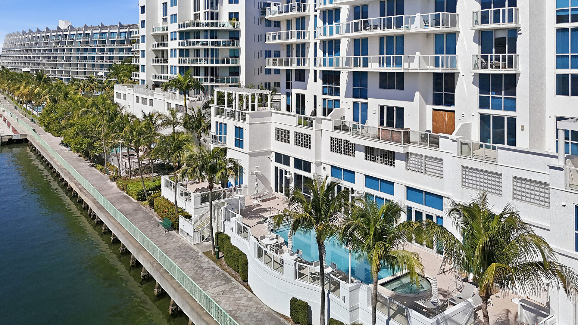 Apartment Complex View, Fence, Handrail, Hot Tub, Patio, Pool, Waterfront, Fence, Pool, Water View