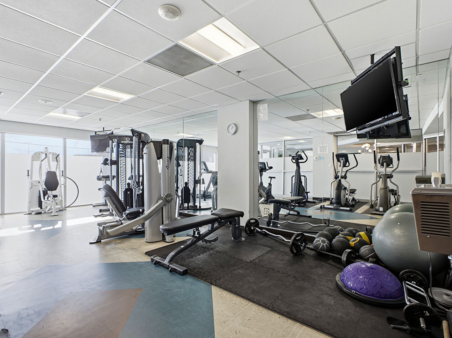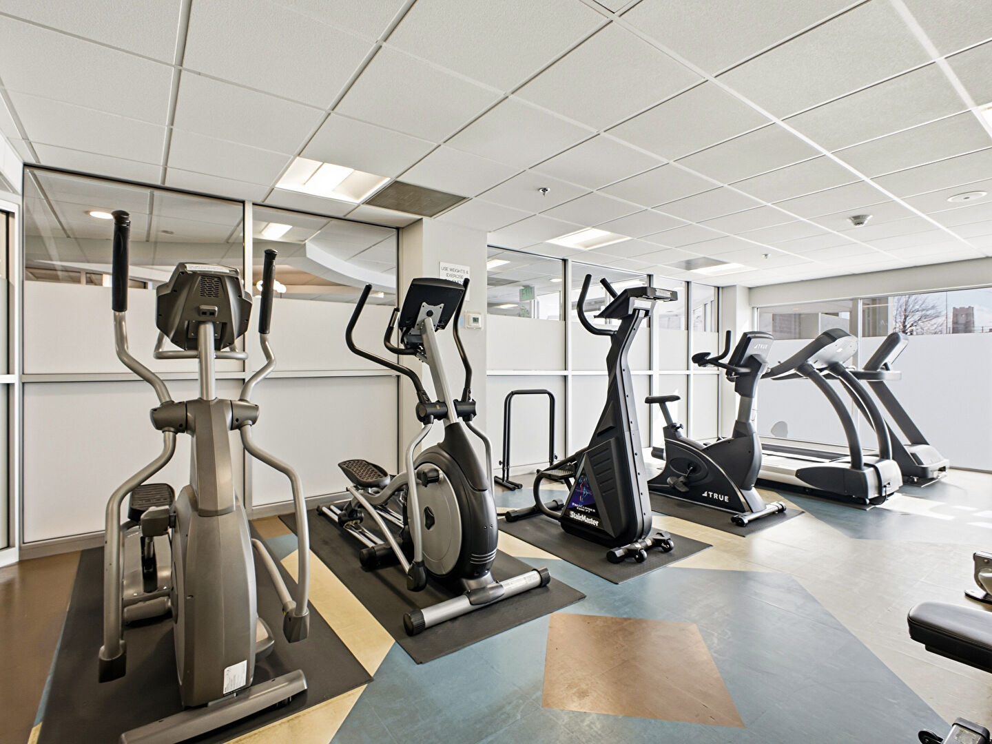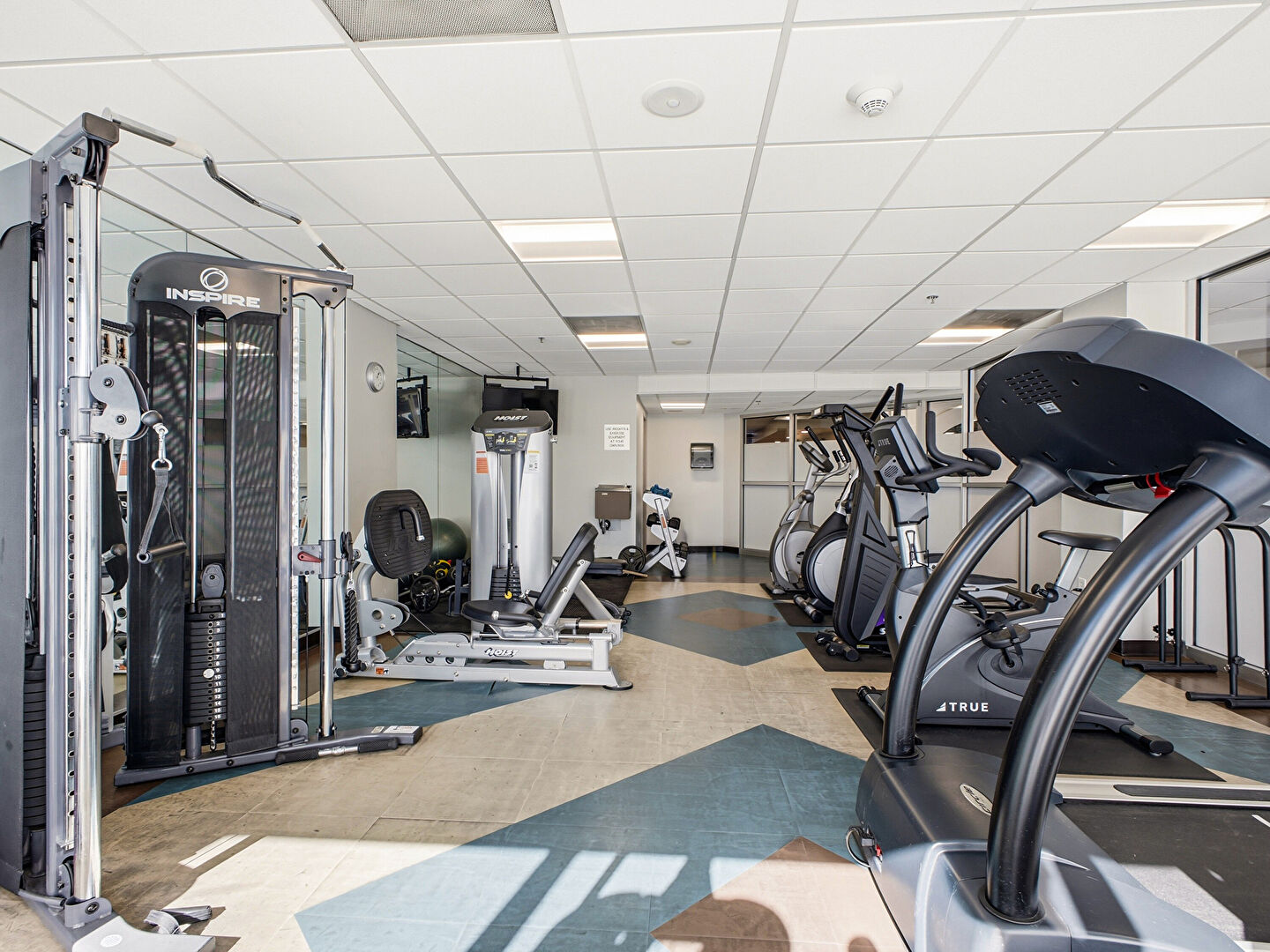 Drop Ceiling, Drywall, Elevator, Recessed Lighting, Wood Finish Floor, Baseboards Wall, Fire Extinguisher, Smoke Carbon Monoxide Detector, Vent