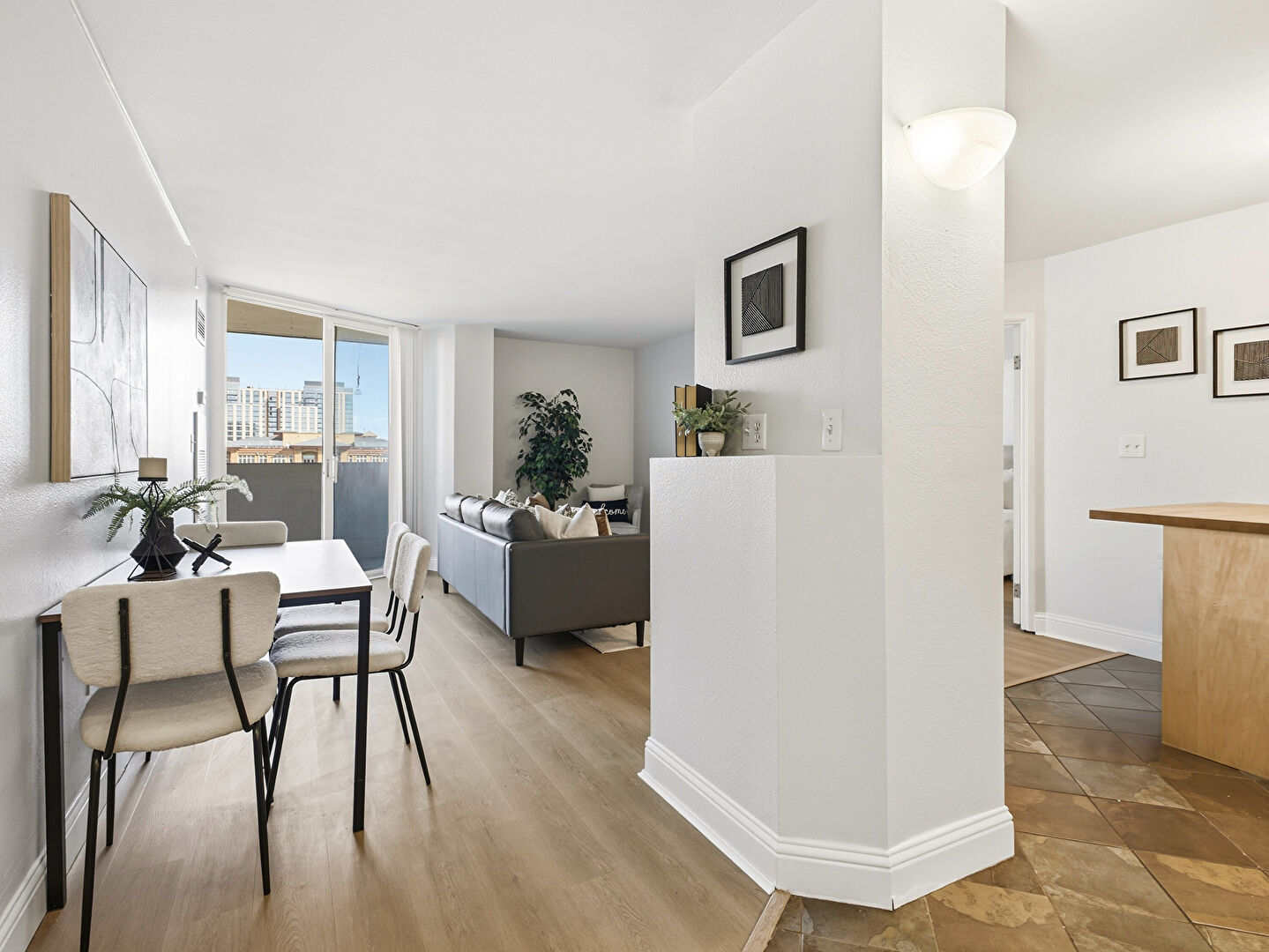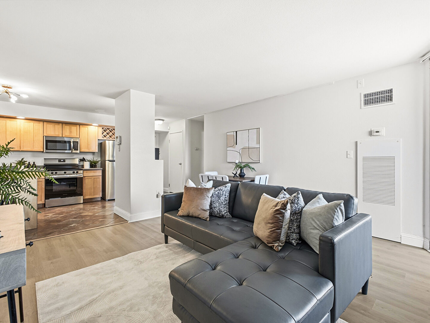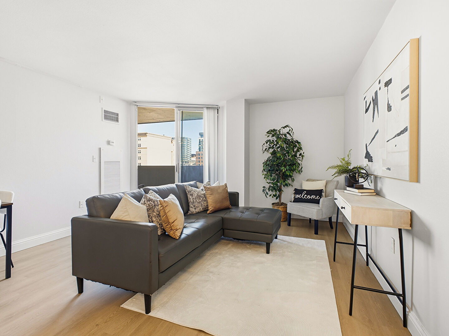 Baseboards Wall, City View, Drywall, Floor Ceiling Windows, Natural Light, Vent, Wall Furnace, Wood Finish Floor, Drywall, Vent