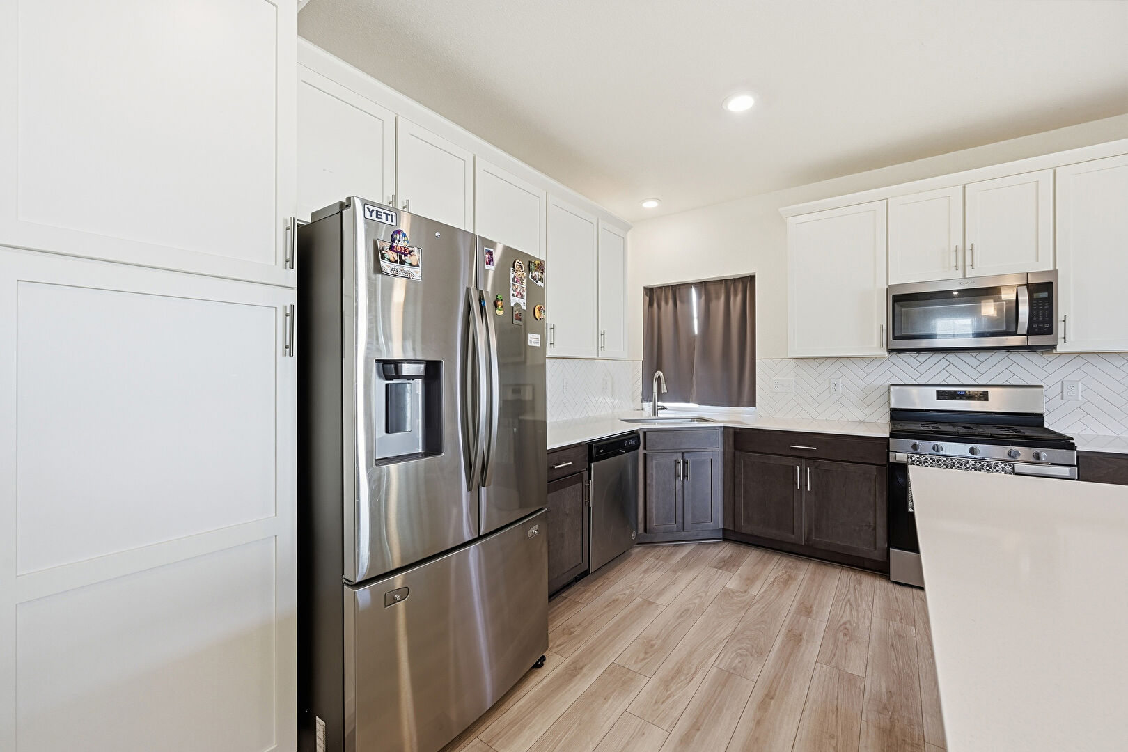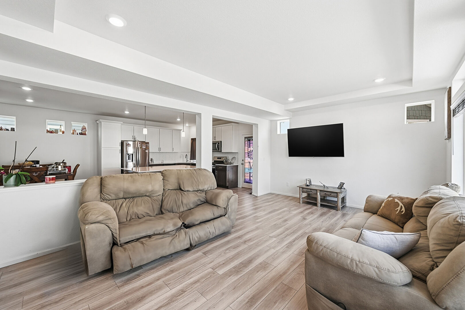 Baseboards Wall, Drywall, L Shaped Kitchen, Natural Light, Recessed Lighting, Tray Ceiling, Vent, Wood Finish Floor, Baseboards Wall, Recessed Lighting, Wood Finish Floor