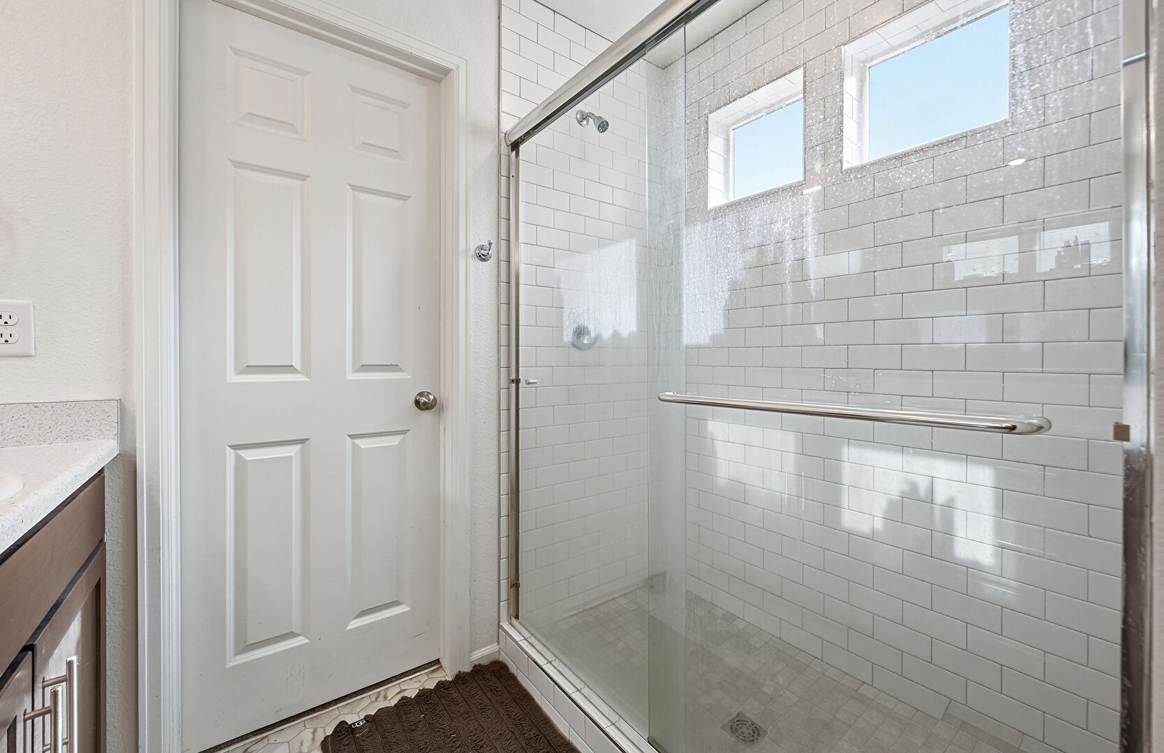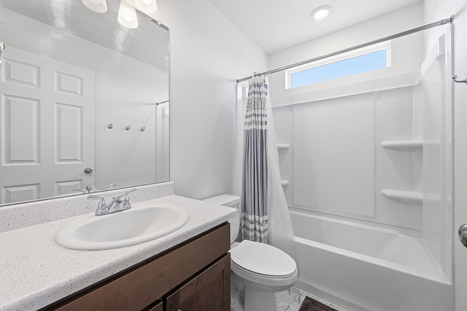 Baseboards Wall, Drywall, Full Bathroom, Half Bathroom, Natural Light, Recessed Lighting, Textured Wall, Vanity, Wood Finish Floor, Combined Bath Shower, Natural Light