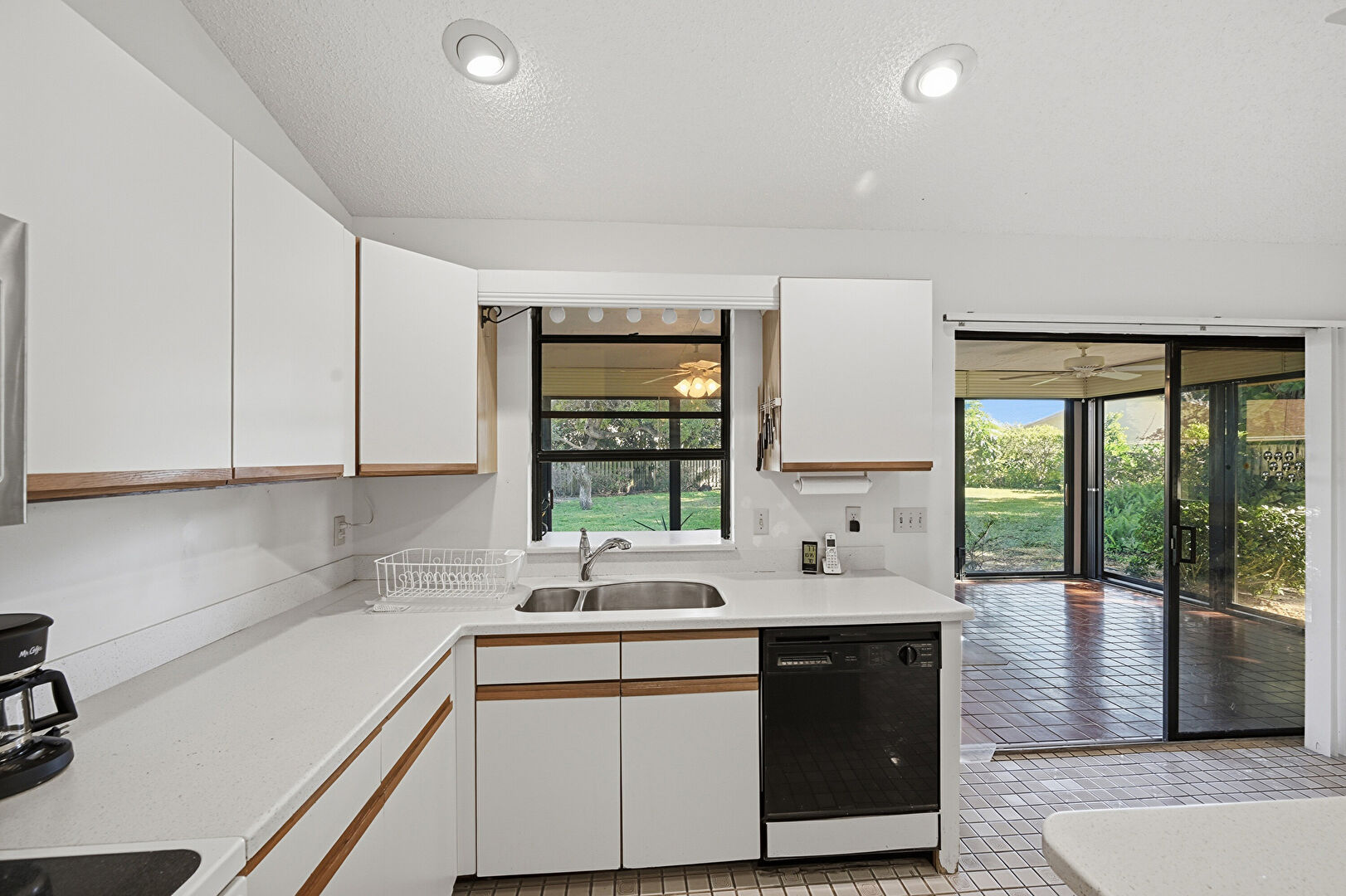 Baseboards Wall, Built In Shelves, Carpet, Cathedral Ceiling, Ceiling Fan, Drywall, Flat Panel Cabinets, High Ceiling, Kitchen Island, L Shaped Kitchen, Medium Brown Cabinets, Natural Light, Opens To Living Area, Recessed Lighting, Skylight, Textured Ceiling, Tile Floor, Vaulted Ceiling, Vent, Cathedral Ceiling, Kitchen Island, Natural Light, Recessed Lighting