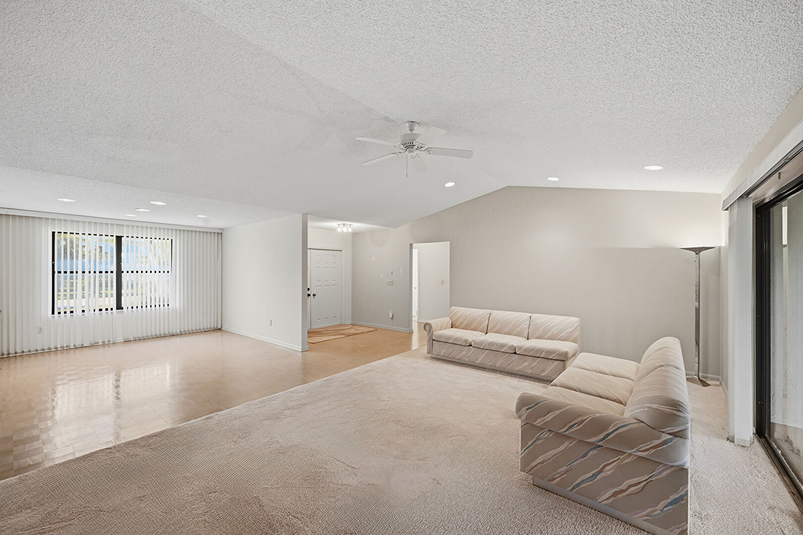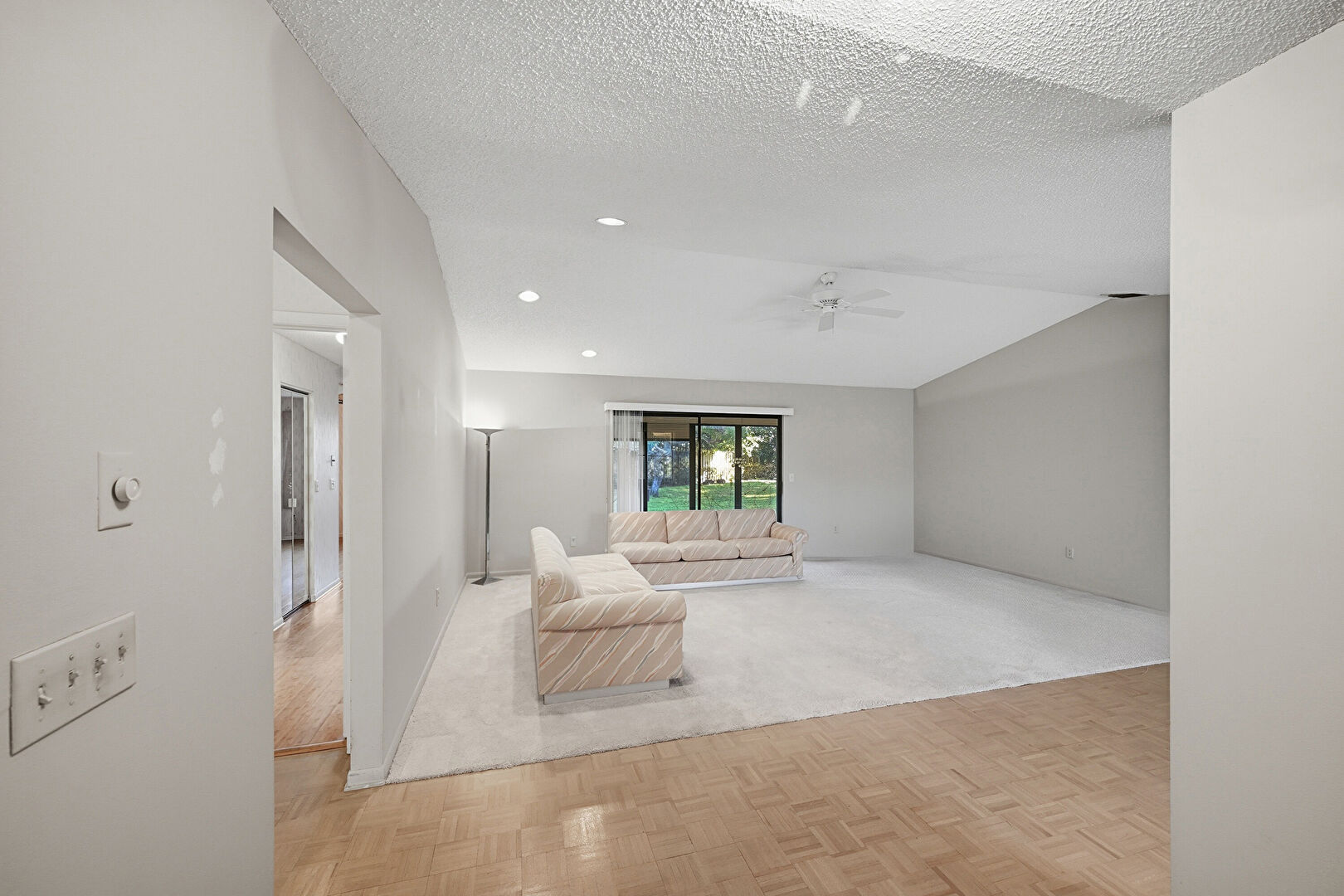 Baseboards Wall, Carpet, Cathedral Ceiling, Ceiling Fan, Drywall, Natural Light, Recessed Lighting, Textured Ceiling, Vaulted Ceiling, Vent, Wood Finish Floor, Baseboards Wall, Ceiling Fan, Drywall, Textured Ceiling, Vaulted Ceiling