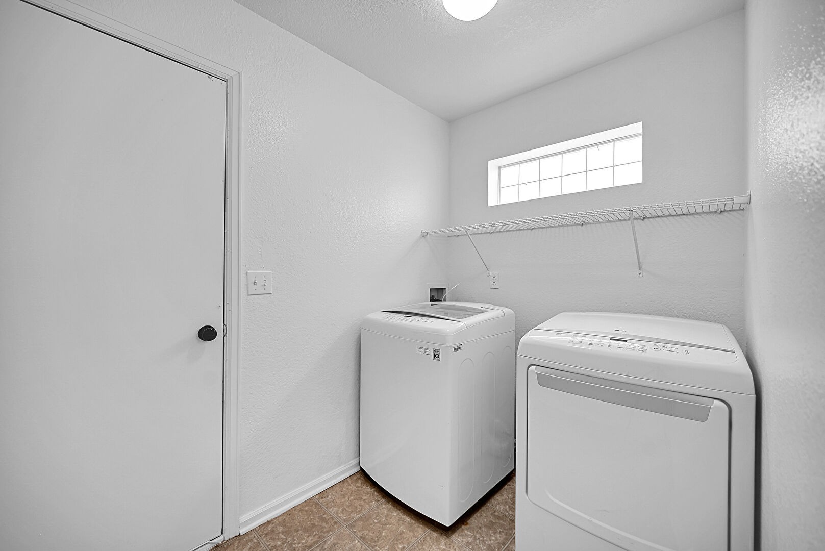 Baseboards Wall, Laundry, Natural Light, Textured Ceiling, Textured Wall, Washer Hookup, Vinyl Floor