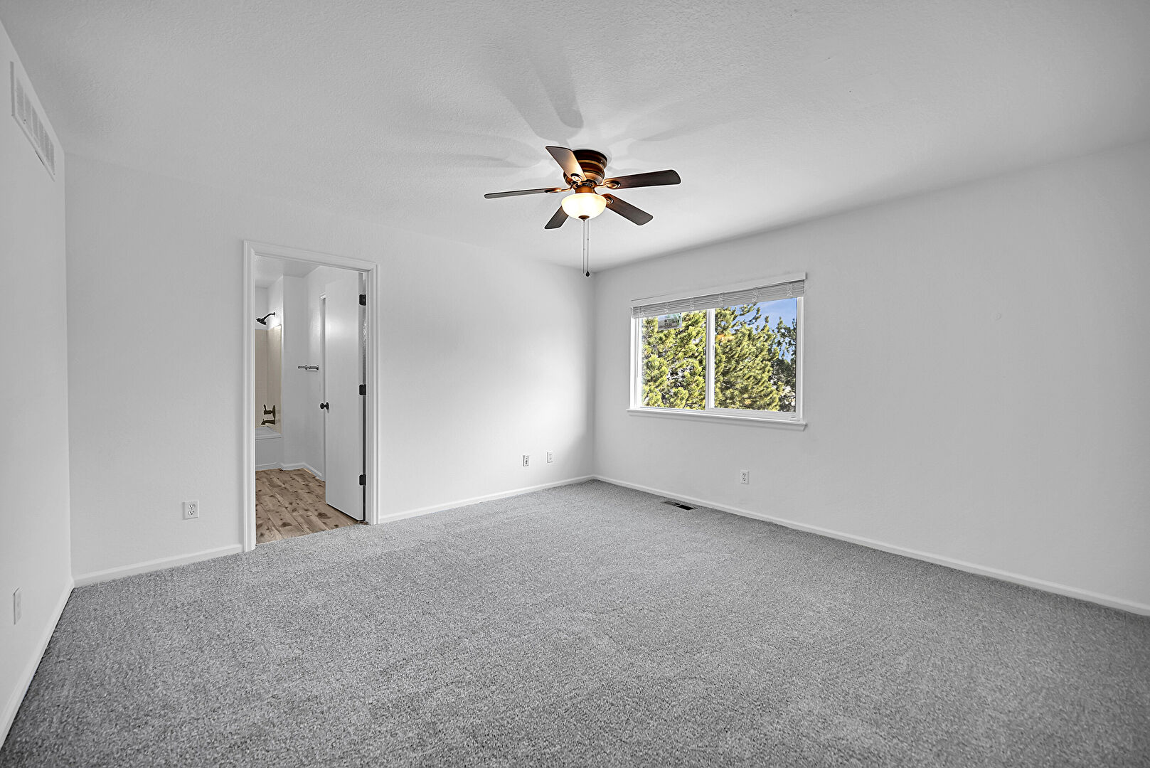 Baseboards Wall, Carpet, Ceiling Fan, Drywall, Natural Light, Textured Ceiling, Vent, Baseboards Wall, Vent