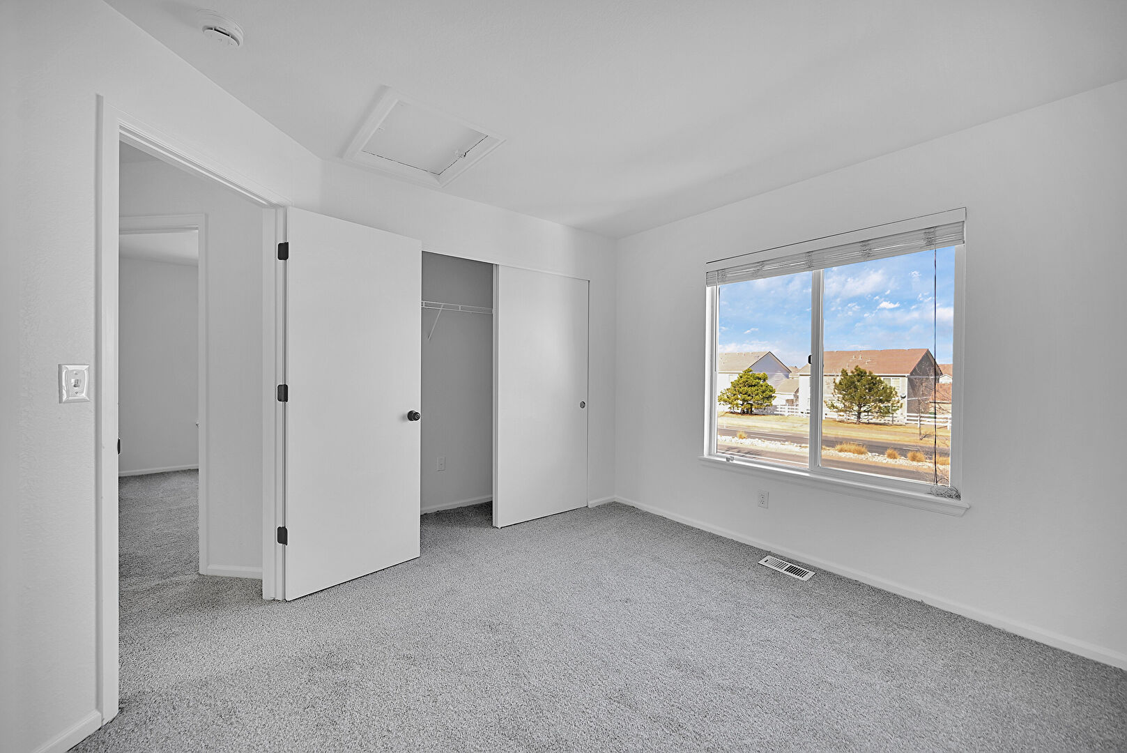 Baseboards Wall, Carpet, Closet, Drywall, Natural Light, Smoke Carbon Monoxide Detector, Vent, Baseboards Wall, Scuttle