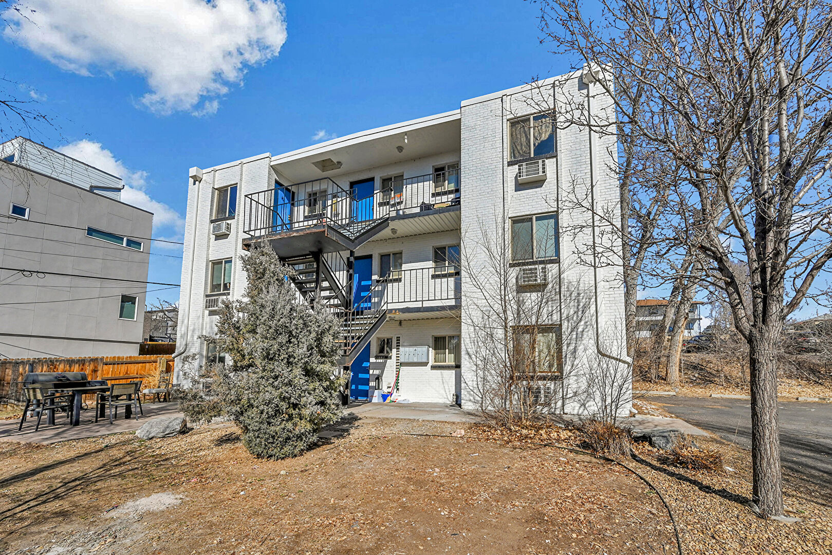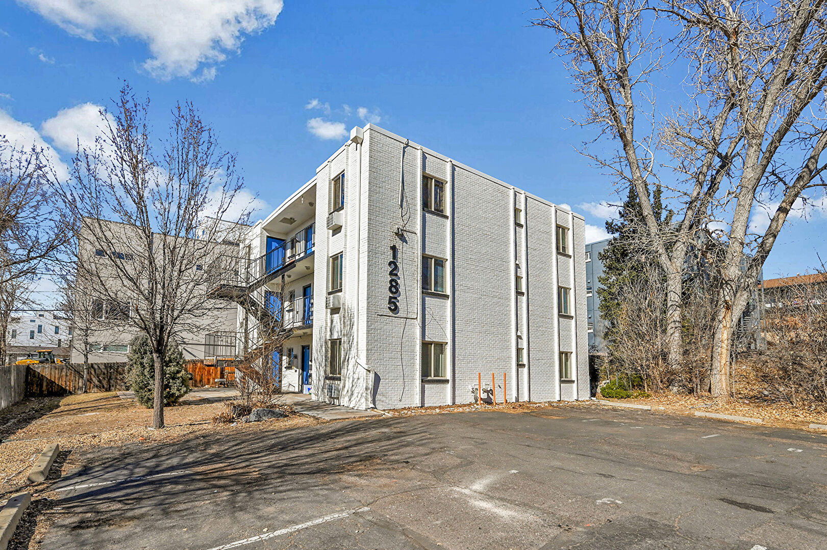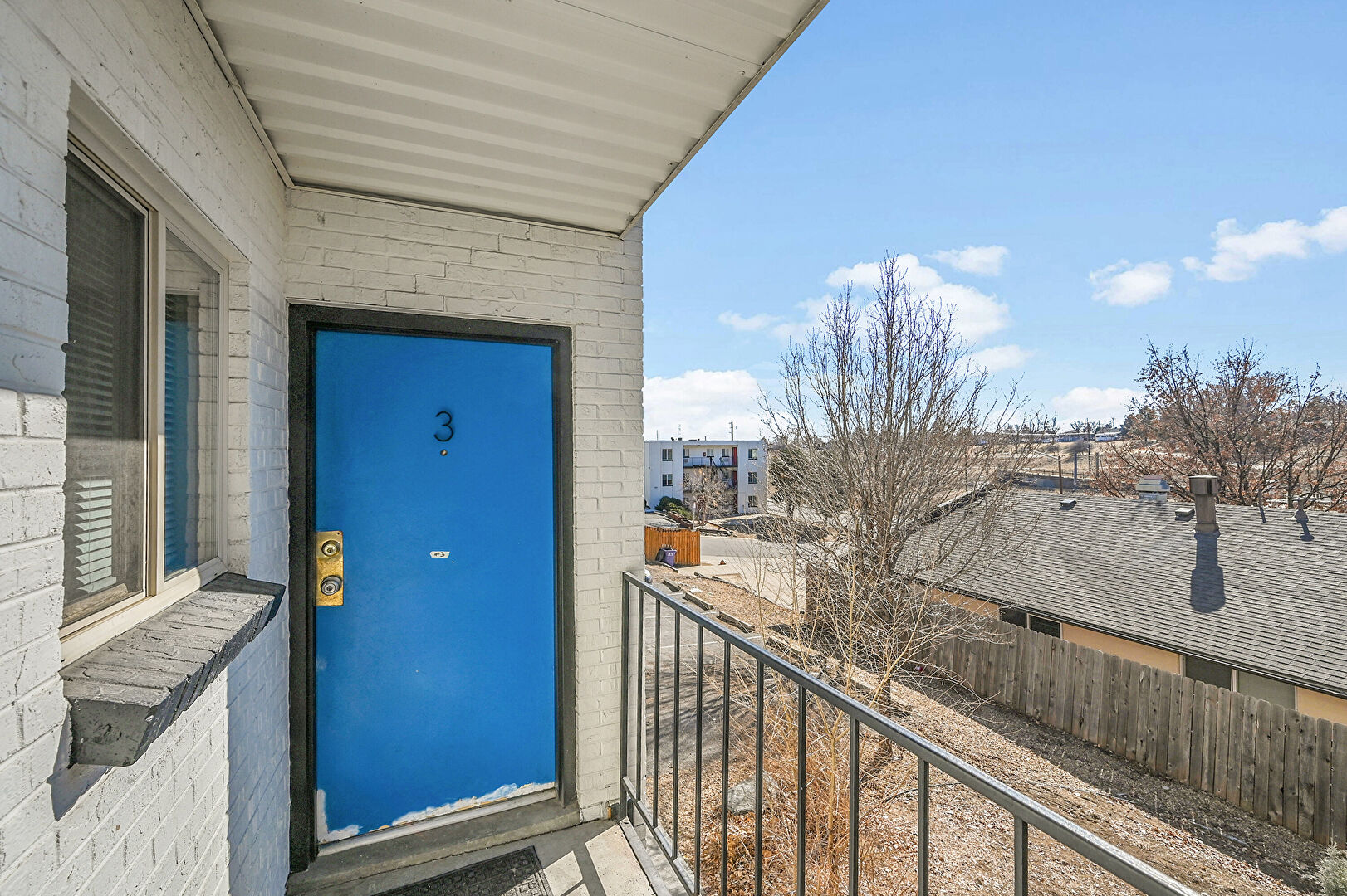 Apartment Complex View, Fence, Parking Lot, Stairs, Apartment Complex View, Stairs