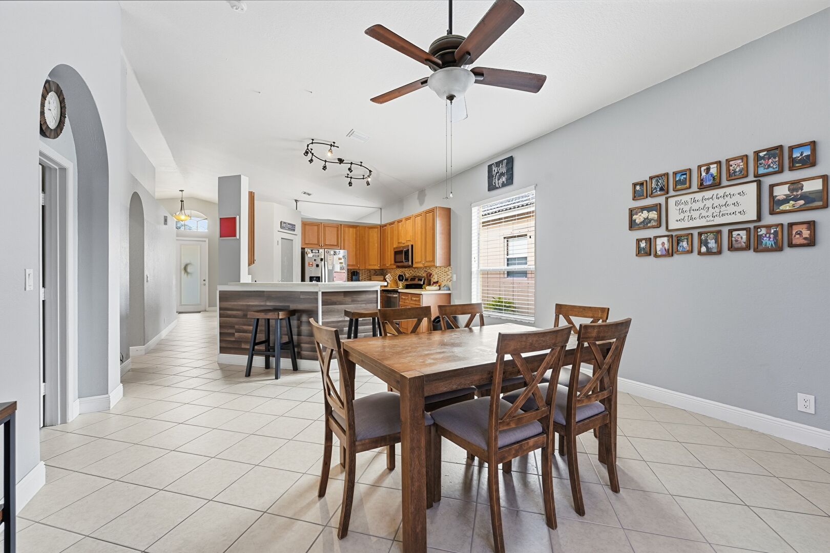 Baseboards Wall, Carpet, Ceiling Fan, Drywall, High Ceiling, Natural Light, Textured Wall, Tile Floor, Track Lighting, Vaulted Ceiling, Vent, Arched Walkways, Baseboards Wall, Drywall, Natural Light