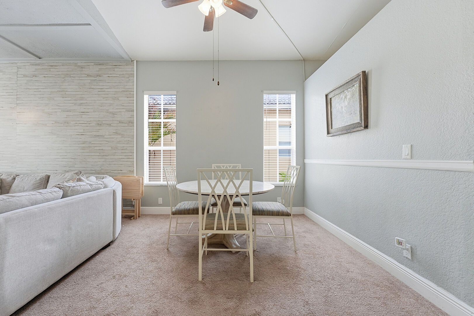 Accent Wall, Baseboards Wall, Carpet, Ceiling Fan, Coffered Ceiling, Drywall, Natural Light, Smoke Carbon Monoxide Detector, Tile Floor, Vaulted Ceiling, Vent, Drywall, Natural Light
