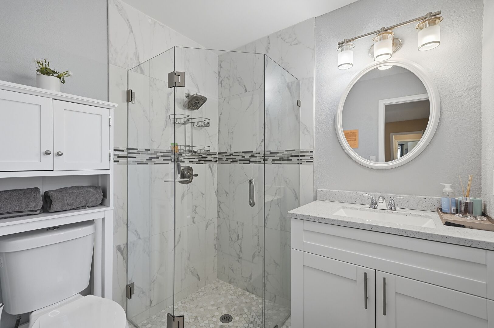 Combined Bath Shower, Drywall, Full Bathroom, Natural Light, Vent, Vanity