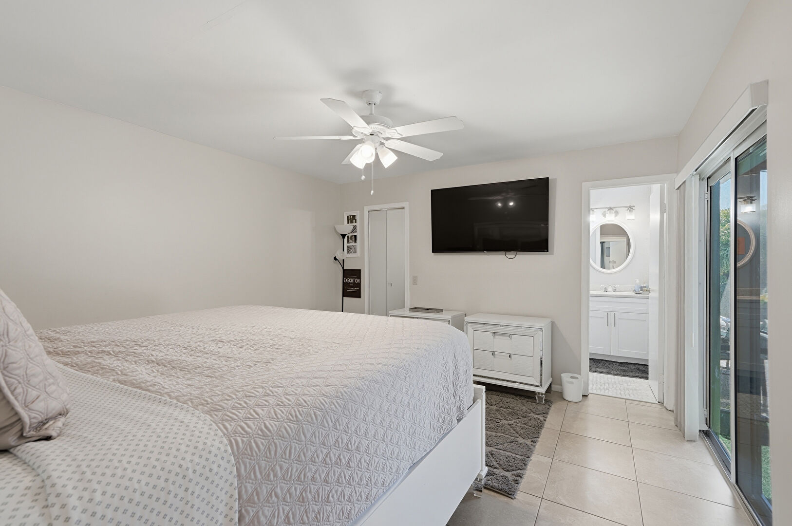 Access To Exterior, Baseboards Wall, Beamed Ceiling, Ceiling Fan, Closet, Drywall, Ensuite Bathroom, Natural Light, Tile Floor, Vaulted Ceiling, Vent, Access To Exterior, Baseboards Wall, Drywall, Natural Light, Tile Floor