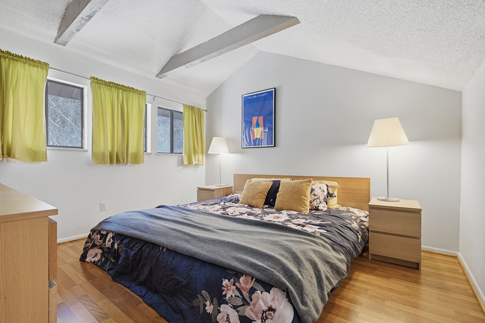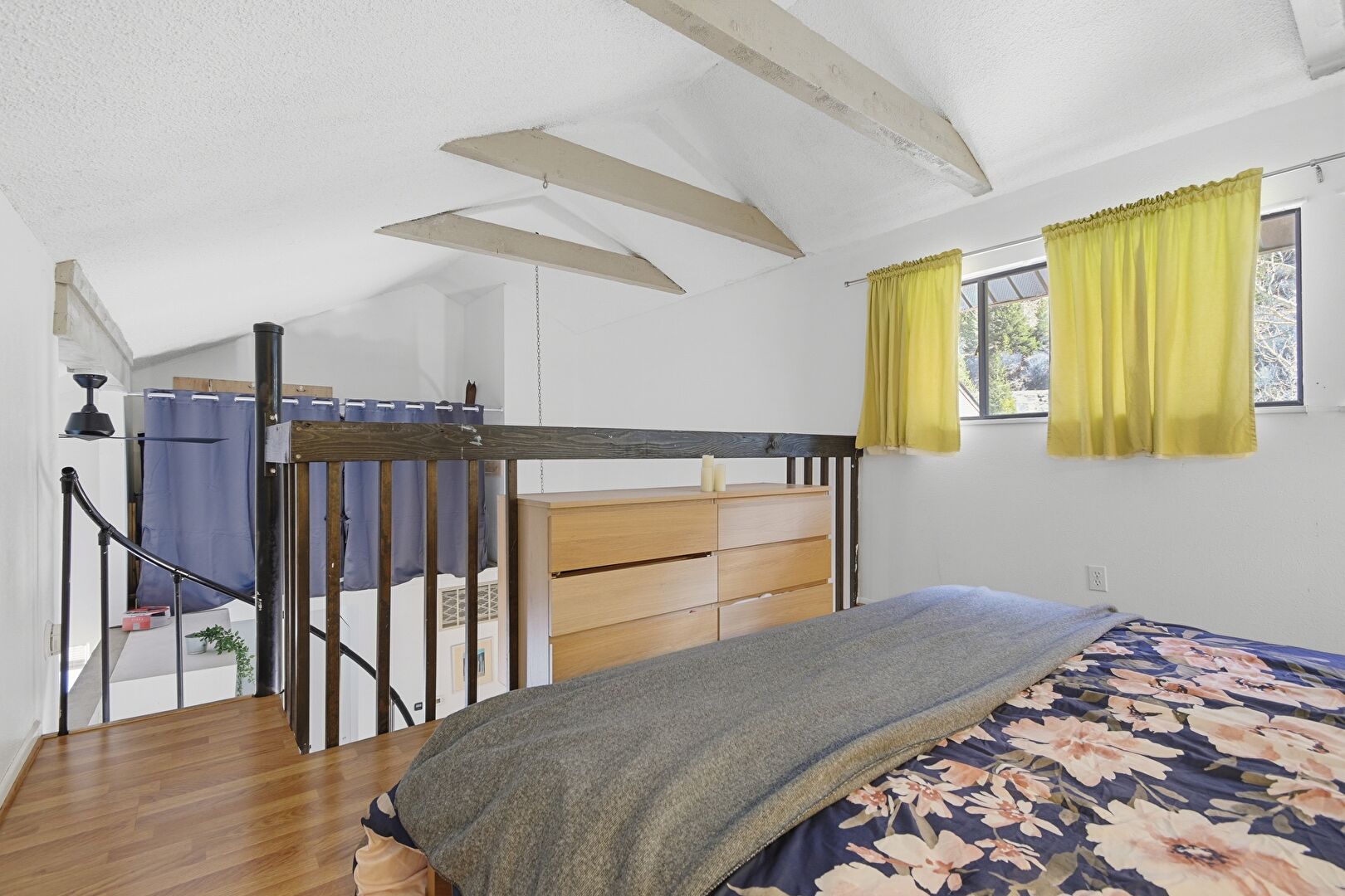 Baseboards Wall, Beamed Ceiling, Bonus Room, Cathedral Ceiling, Ceiling Fan, Closet, Drywall, High Ceiling, Natural Light, Textured Ceiling, Vaulted Ceiling, Wood Finish Floor